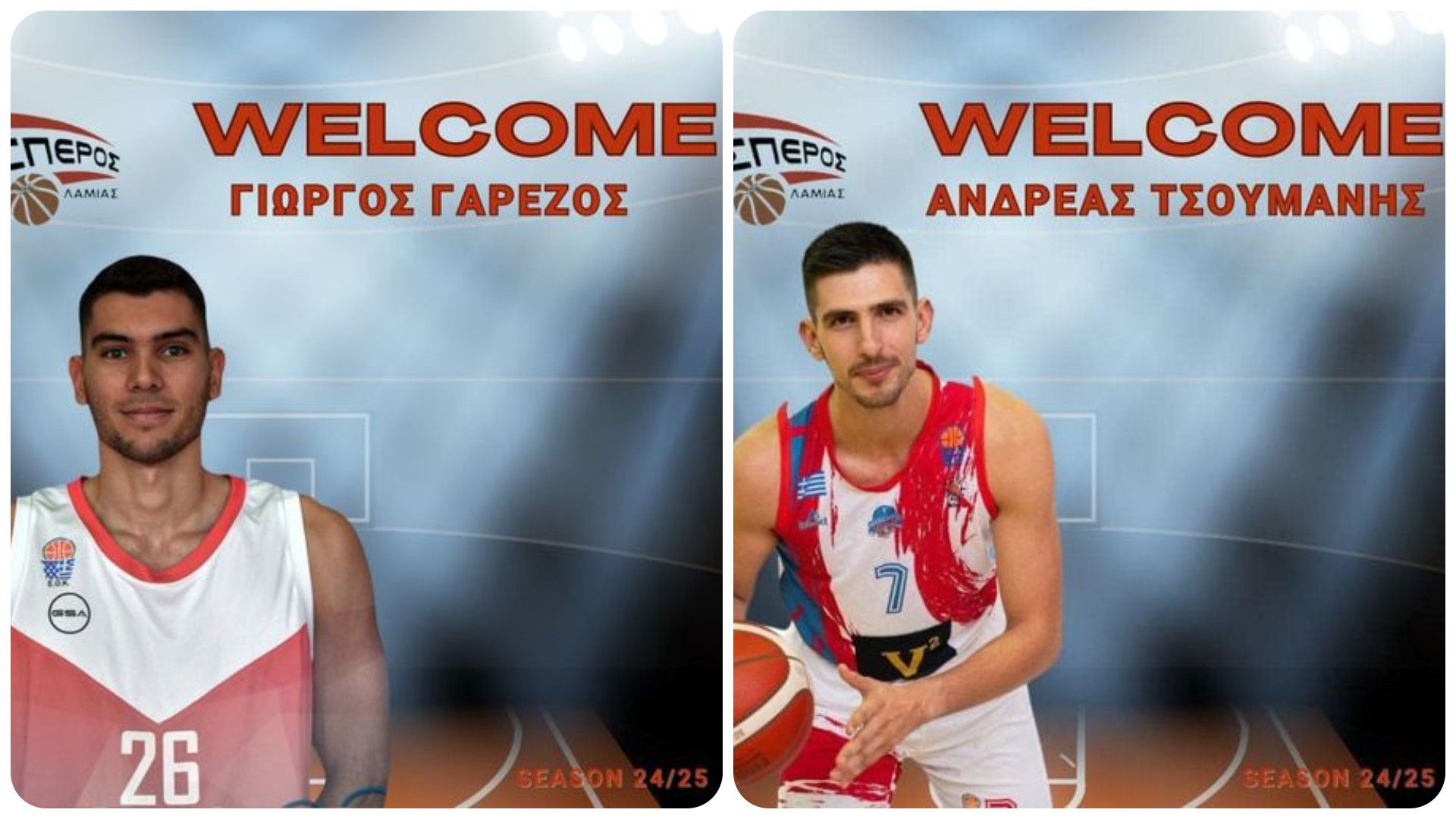 Ο Έσπερος Λαμίας συνεχίζει τον μεταγραφικό του σχεδιασμό ενόψει Elite League για την σεζόν 2024-2025 ανακοινώνοντας τους Γιώργο Γαρέζο και Ανδρέα Τσουμάνη.