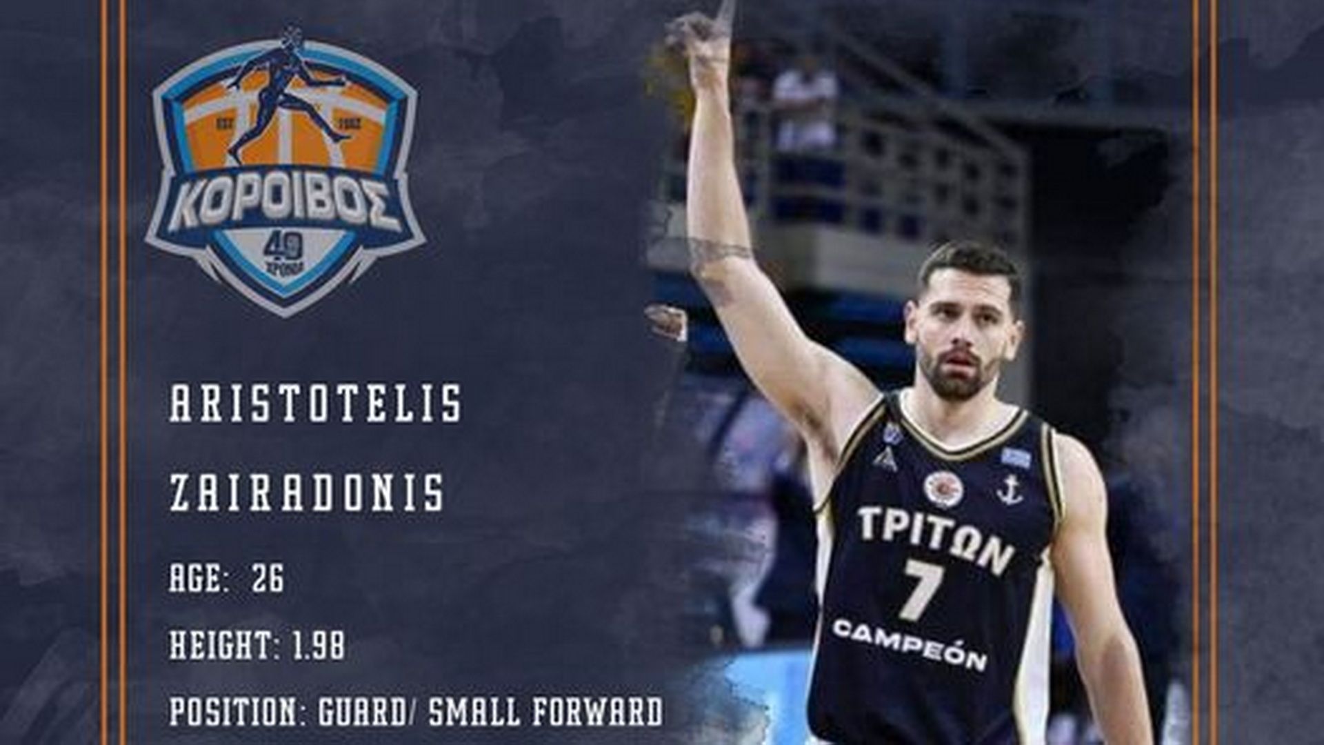 «Ο ΑΣ ΚΟΡΟΙΒΟΣ ανακοινώνει οτι ο αθλητής Αριστοτέλης Ζαραϊδώνης θα ειναι μέλος του ρόστερ της ομάδας μας για την σεζόν 2024-2025.