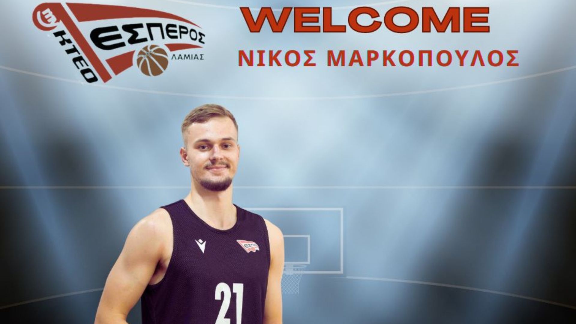 «Η Διοικούσα Επιτροπή του ΕΣΠΕΡΟΣ my kteo ΓΣ ΛΑΜΙΑΣ ανακοινώνει την συνεργασία μας, με τον αθλητή ΝΙΚΟΛΑΟ ΜΑΡΚΟΠΟΥΛΟ. Ο Νίκος Μαρκόπουλος , γεννήθηκε το έτος 2005,έχει ύψος 1,92 αγωνίζεται στις θέσεις των guard .Κατά την περσινή περίοδο ήταν ενταγμένος στο αναπτυξιακό πρόγραμμα του συλλόγου. Ο σύλλογός μας με την ένταξή του στο Αντρικό τμήμα ,ενισχύει τον κορμό του νεανικού στοιχείου ,δείχνοντας την επιδίωξη της ομάδας να δώσει ευκαιρίες, σε νέους αθλητές να αναπτυχθούν και να αποκτήσουν αγωνιστικές εμπειρίες. Τον καλωσορίζουμε στην οικογένεια των ‘’μεγάλων’’ και του ευχόμαστε υγεία , υπομονή, δύναμη και μαχητικότητα».