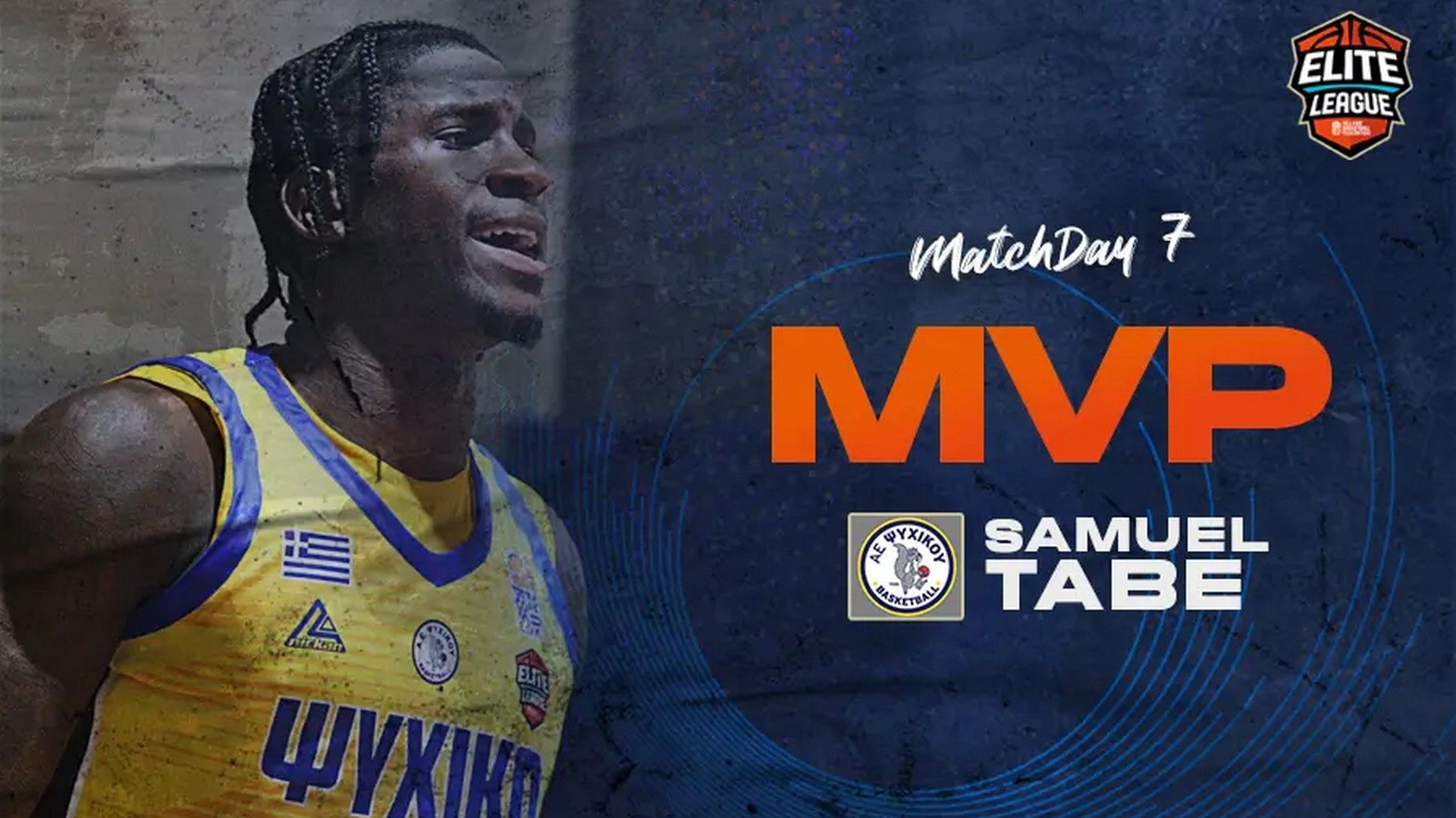 Ο Σάμιουελ Τάμπε του Ψυχικού αναδείχθηκε πολυτιμότερος παίκτης της έβδομης αγωνιστικής στην Elite League, καθώς συγκέντρωσε 32 βαθμούς στο σύστημα αξιολόγησης, μεγαλύτερη επίδοση από τις νικήτριες ομάδες του Σαββατοκύριακου.
