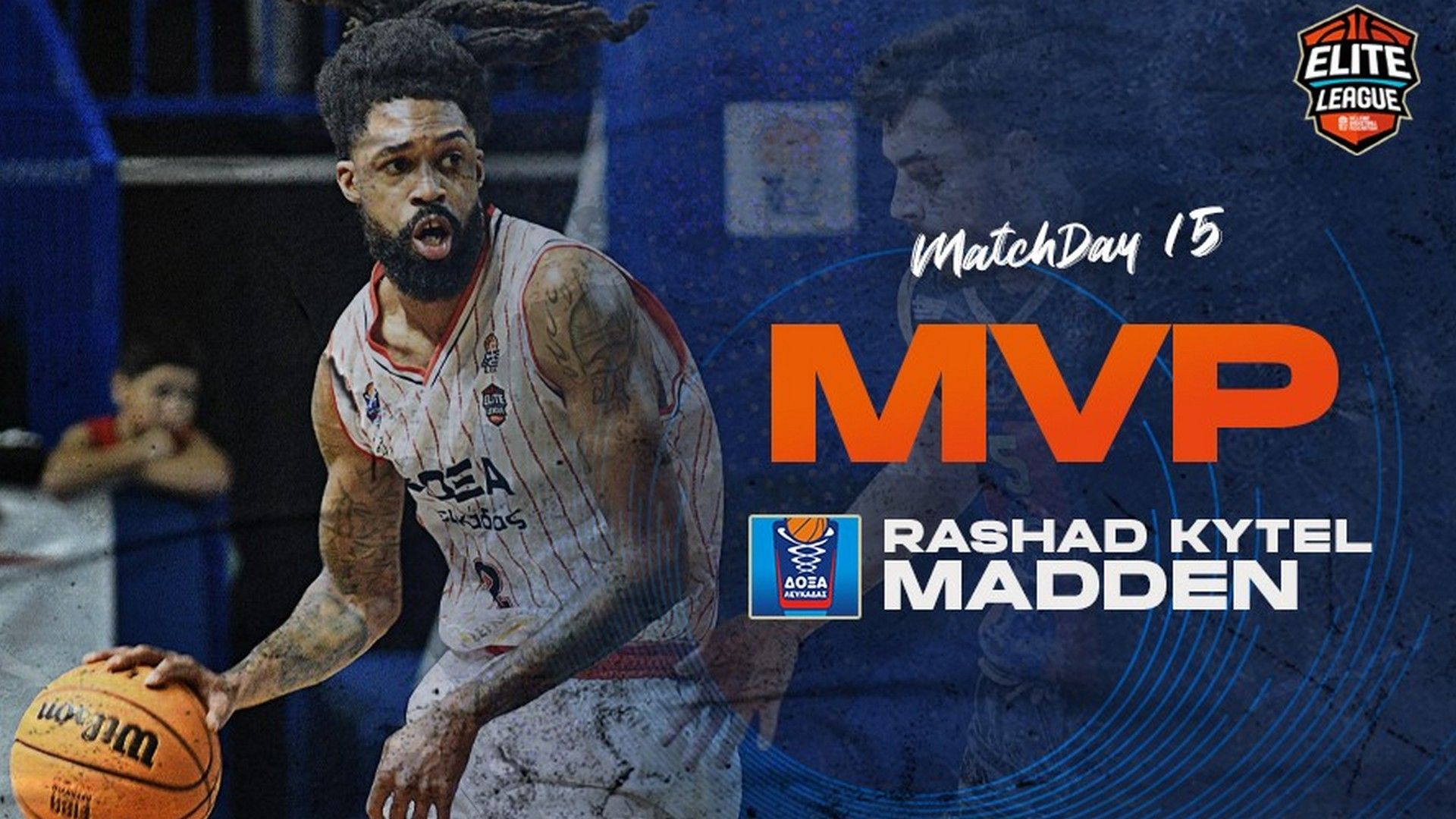 Σε πολυτιμότερο παίκτη της 15ης αγωνιστικής αναδείχθηκε ο Μάντεν της Δόξας Λευκάδας, με τον Αμερικανό αθλητή να επιβραβεύεται για την εμφάνισή του κόντρα στη Νήαρ Ηστ, όπου συγκέντρωσε 29 μονάδες στο σύστημα αξιολόγησης.