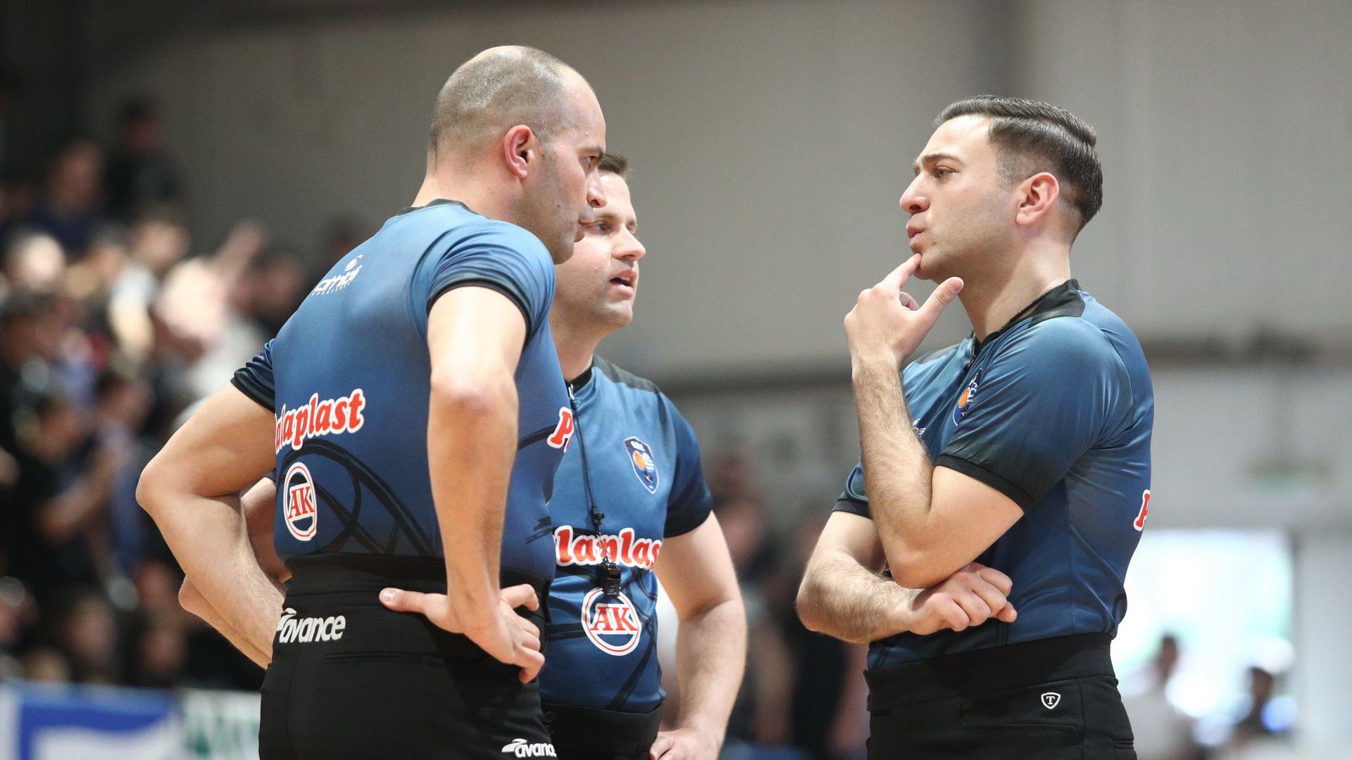 Οι διαιτητές ζήτησαν την απομάκρυνση των οπαδών που έβριζαν και μόλις η Αστυνομία τους έβγαλε από το κλειστό, τότε επέστρεψαν στο παρκέ για να συνεχιστεί το παιχνίδι.