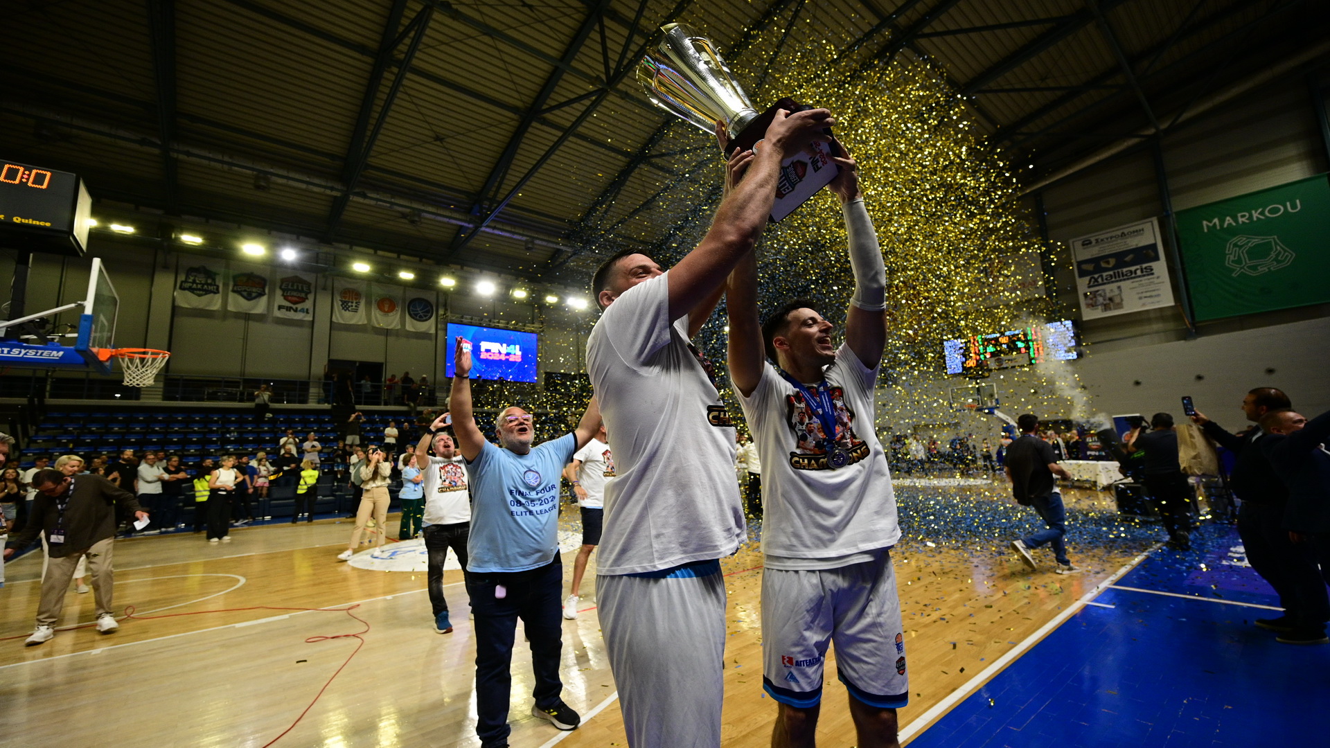 Η Μύκονος γιορτάζει την άνοδο της στην GBL, για πρώτη φορά στην ιστορία της, με τους νησιώτες να σηκώνουν το βαρύτιμο τρόπαιο του πρωταθλητή της Elite League, μετά την νίκη τους επί της Μεγαρίδας και να… μπουγελώνουν τον αρχιτέκτονα της μεγάλης αυτής επιτυχίας, τον Βαγγέλη Ζιάγκο.