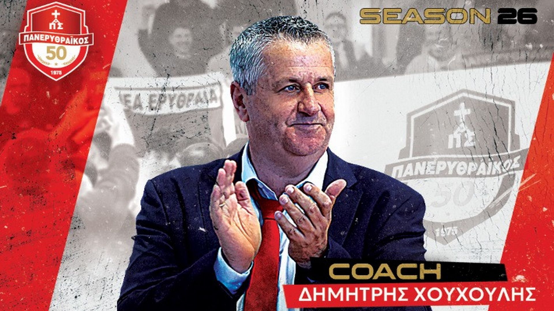 Πανερυθραϊκός και Δημήτρης Χουχουλής συνεχίζουν μαζί για 26η συνεχόμενη σεζόν, με τους «ερυθρόλευκους» να ανακοινώνουν την ανανέωση της συνεργασίας τους με τον… αιώνιο προπονητή τους.
