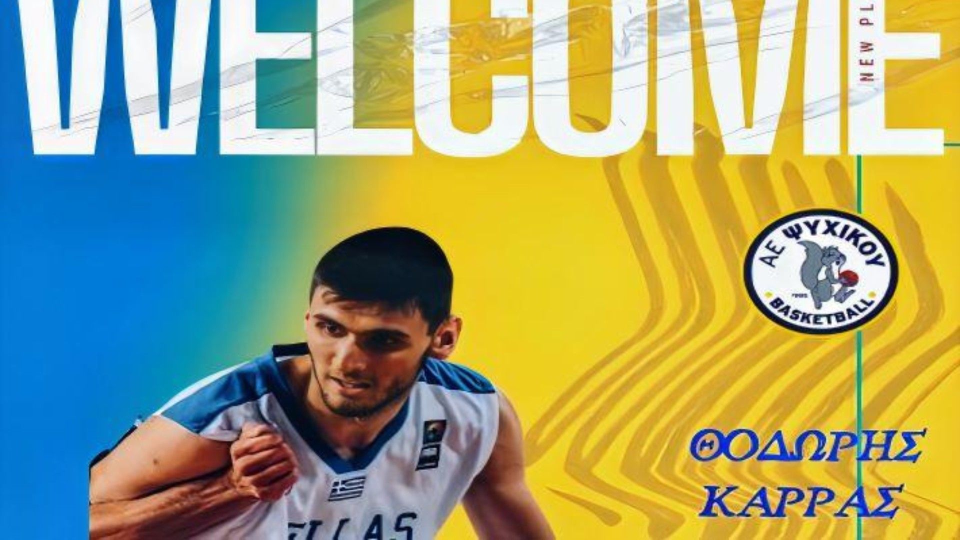 «Η διοίκηση της Α.Ε Ψυχικού ανακοινώνει την έναρξη της συνεργασίας της με τον αθλητή Θεόδωρο Καρρά και τον καλωσορίζει στην «οικογένεια» της.Ο Θοδωρής Καρράς γεννήθηκε στις 18/12/1997, έχει ύψος 2.09 και παίζει στη θέση του σέντερ. Ξεκίνησε το μπάσκετ από τα Εκπαιδευτήρια Δούκα και στην συνέχεια το 2017 πήγε στον ΠΑΟΚ. Από το δικέφαλο της Θεσσαλονίκης μεταπήδησε στην Καρδίτσα στην οποία αγωνίσθηκε συνολικά 4 σεζόν. Το 2022 αναδείχθηκε πρωταθλητής της Elite league με την ομάδα της Θεσσαλίας και την επόμενη σεζόν αγωνίσθηκε μαζί της στην Basket League.Τη σεζόν 2023-24 φόρεσε την φανέλα του Κόροιβου Αμαλιάδας, ενώ πέρσι αγωνίσθηκε στην Ελευθερούπολη με την οποία σε 26 παιχνίδια είχε 7.3 πόντους μ.ο, 7,3 ριμπάουντ , 1,1 μπλοκ και σούταρε με 53% .Ο Θοδωρής Καρράς αποτέλεσε ένα από τα βασικότατα στελέχη της Εθνικής ομάδας Νέων-Ανδρών , η οποία το καλοκαίρι του 2017 κατέκτησε το χρυσό μετάλλιο στο Ευρωπαϊκό πρωτάθλημα U20 που διεξήχθη στην Κρήτη.