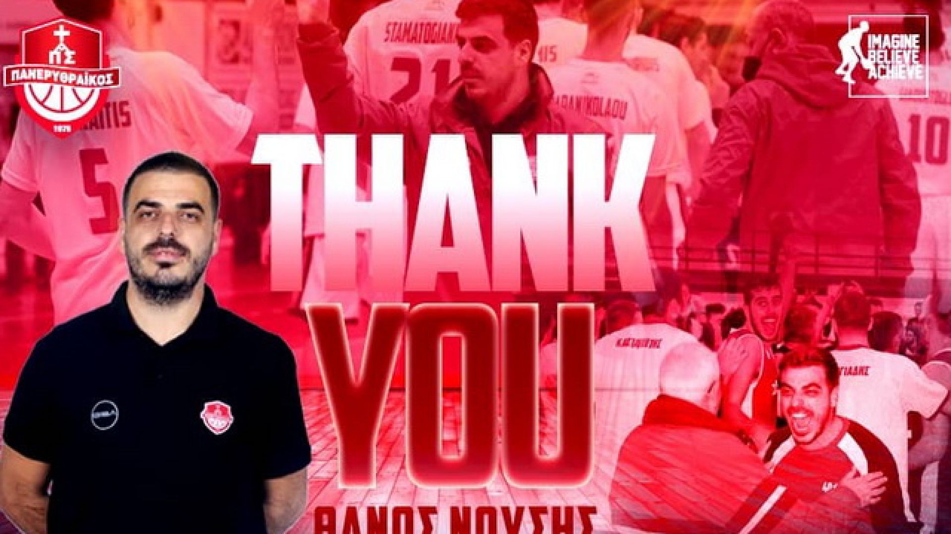 Ο Πανερυθραϊκός BC ανακοινώνει την ολοκλήρωση της συνεργασίας με τον προπονητή Θάνο Νούση, ο οποίος τίμησε με την παρουσία του για 7 ολόκληρα χρόνια τον Σύλλογο.
