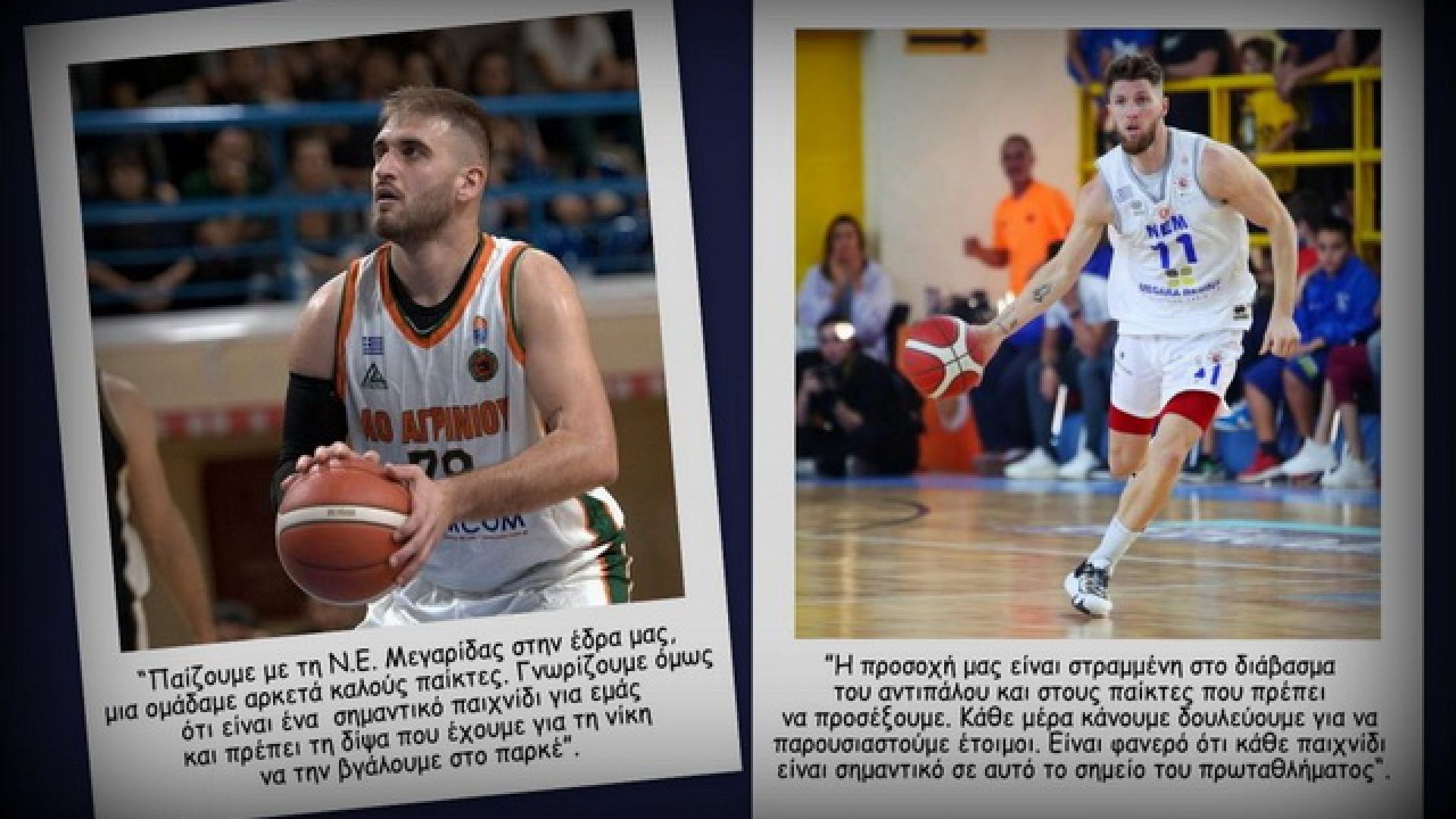 «Μπροστά μας πλέον έχουμε τον αγώνα με τη Ν.Ε. Μεγαρίδας στην έδρα μας. Γνωρίζουμε ότι είναι μια ομάδα με αρκετά καλούς παίκτες. Όλοι όμως γνωρίζουμε ότι είναι ένα σημαντικό παιχνίδι για εμάς και πρέπει τη δίψα που έχουμε για τη νίκη να την βγάλουμε στο παρκέ. Θεωρώ ότι ο κόσμος θα μας βοηθήσει και θα μπορέσουμε να βγάλουμε τα πράγματα που έχουμε δουλέψει, για να επιστρέψουμε στα θετικά αποτελέσματα και να πανηγυρίσουμε στο τέλος όλοι μαζί».