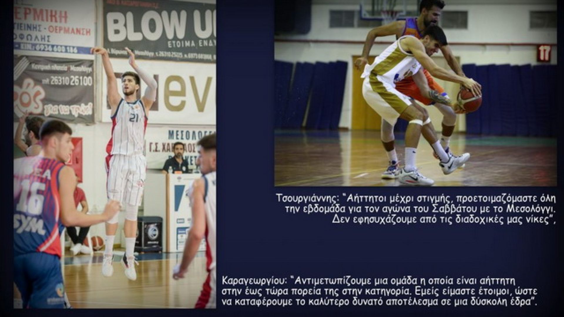 «Αήττητοι μέχρι στιγμής, προετοιμαζόμαστε όλη την εβδομάδα για τον αγώνα του Σαββάτου με το Μεσολόγγι. Δεν εφησυχάζουμε από τις διαδοχικές μας νίκες, καθώς οι αντίπαλοι έχουν νεανικό ρόστερ και βγάζουν ενέργεια στο γήπεδο. Η ομάδα μας συγκεντρωμένη και αφοσιωμένη στον επικείμενο αγώνα, καλεί τον κόσμο να έρθει να την στηρίξει, όπως κάνει σε κάθε παιχνίδι!», τόνισε ο 22χρονος φόργουορντ των πρωτοπόρων, Άρης Τσουργιάννης.