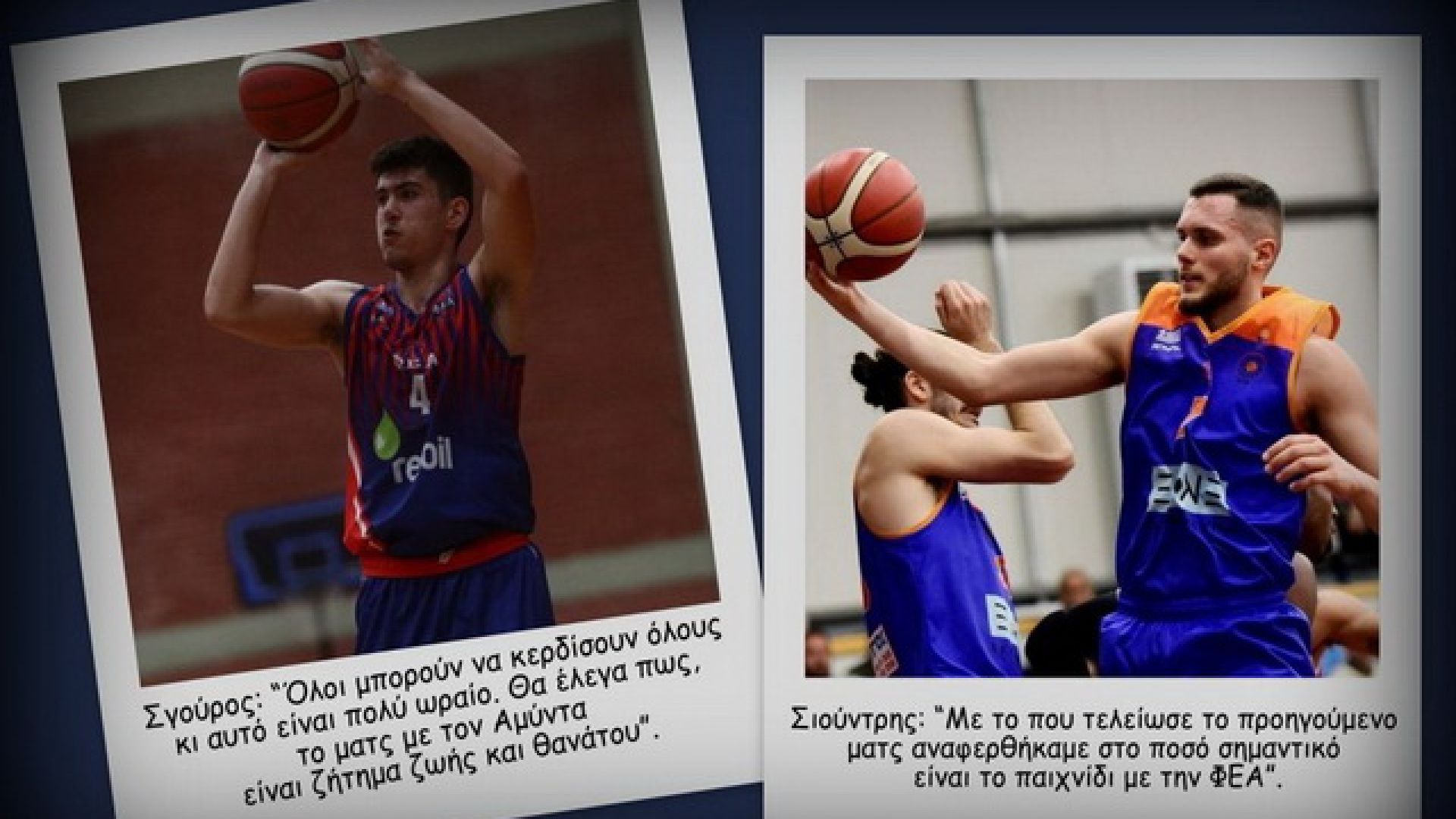 «Μέχρι τώρα το πρωτάθλημα είναι πολύ ανταγωνιστικό. Όλοι μπορούν να κερδίσουν όλους κι αυτό είναι πολύ ωραίο. Θα έλεγα πως, το ματς με τον Αμύντα είναι ζήτημα ζωής και θανάτου. Σημαντικό το γεγονός ότι παίζουμε στην έδρα μας. Η ΦΕΑ όπως σε όλα τα ματς, έτσι και σε αυτό θα κοιτάξει στα μάτια τον αντίπαλο και εκτιμώ πως αν ακολουθήσουμε το πλάνο του κόουτς Καρατζά το αποτέλεσμα θα είναι υπέρ μας!».