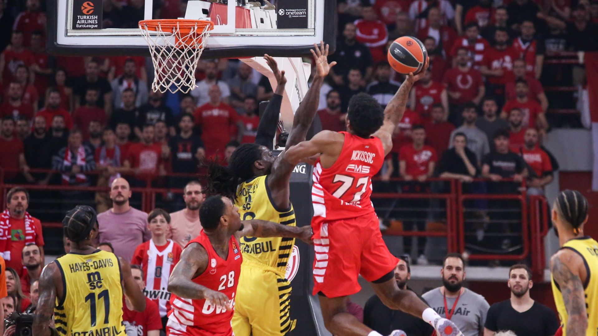 Ο Κάνααν έπαιξε high pick and roll με τον Βεζένκοβ και σκόραρε σε ένα απίστευτο σουτ – που ήταν παντελώς εκτός playbook, κάνοντας το 2/2 στα τρίποντα. Τότε η επίθεση του Ολυμπιακού απλοποιήθηκε μιας και η Φενέρ αναγκάστηκε να ανοίξει το γήπεδο. Fast Forward στο Game 2, όπου με μόλις 4 δευτερόλεπτα στο χρονόμετρο οι Πιερ, Καλάθης και Χέιζ δε ξεκολλάνε από τους Παπανικολάου, Κάναν και Βεζένκοφ και ο Μουσταφά Φαλ ανενόχλητος σκοράρει μέσα στη ρακέτα με αντίπαλο τον Κάρσεν Έντουαρντς.