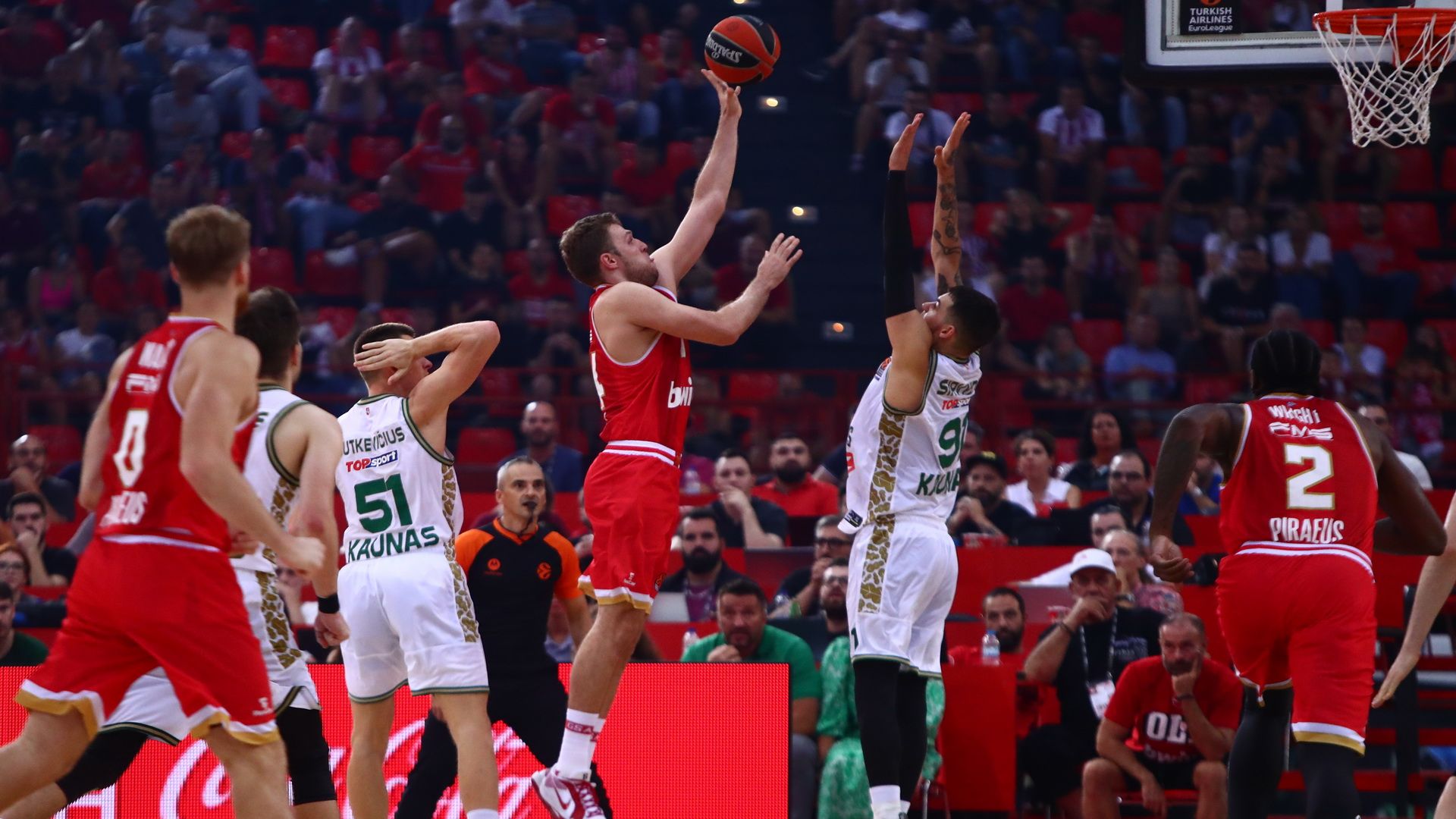 Σε ένα παιχνίδι όπου σφυρίχτηκαν 53 φάουλ, ερυθρόλευκοι βάρεσαν 43(!) βολές έναντι 25 της Ζαλγκίρις. με τους ερυθρόλευκους να σημειώνουν μόλις 65% στις βολές. Ενώ ξεκίνησαν δυνατά το παιχνίδι με φανταστική άμυνα στο 1on1 και οδήγησαν την ομάδα του coach Τρινκιέρι σε πολλά λάθη εξασφαλίζοντας διαφορά από νωρίς, στη συνέχεια ο Ολυμπιακός έχασε την ενέργεια του, η άμυνα στο 1on1 δεν λειτούργησε και είδε την Ζαλγκίρις να κερδίζει τα επόμενα τρία δεκάλεπτα μειώνοντας αισθητά το σκορ. Οι ερυθρόλευκοι ήταν δυσλειτουργικοί στην επίθεση, με τον Ντόρσεϊ να παίρνει βιαστικά σουτ χωρίς καν να αλλάξει τρίτη πάσα και υπό άσχημες συνθήκες. Όπως και ο Γκος πήρε δύο άσχημες αποφάσεις στο τέλος του ημιχρόνου. Και αυτό γιατί ο Ολυμπιακός εκείνη τη στιγμή χρειαζόταν παίκτες που θα βρουν ρυθμό από την άμυνα τους και όχι από την επίθεση. Οι 18 ασίστ για 19(!) λάθη δείχνουν πολλά.