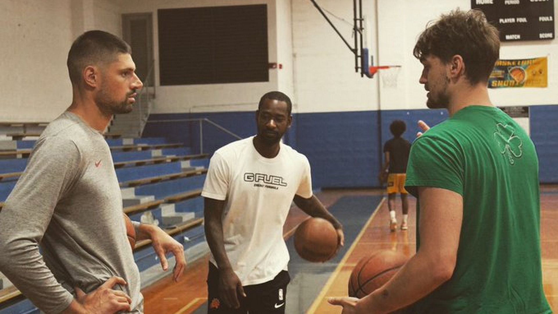 Οι τρεις τους προπονήθηκαν μαζί, με τον παίκτη της Ρεάλ Μαδρίτης, μάλιστα, να φορά ένα πράσινο tshirt του Παναθηναϊκού, με το τριφύλλι στην πλάτη.