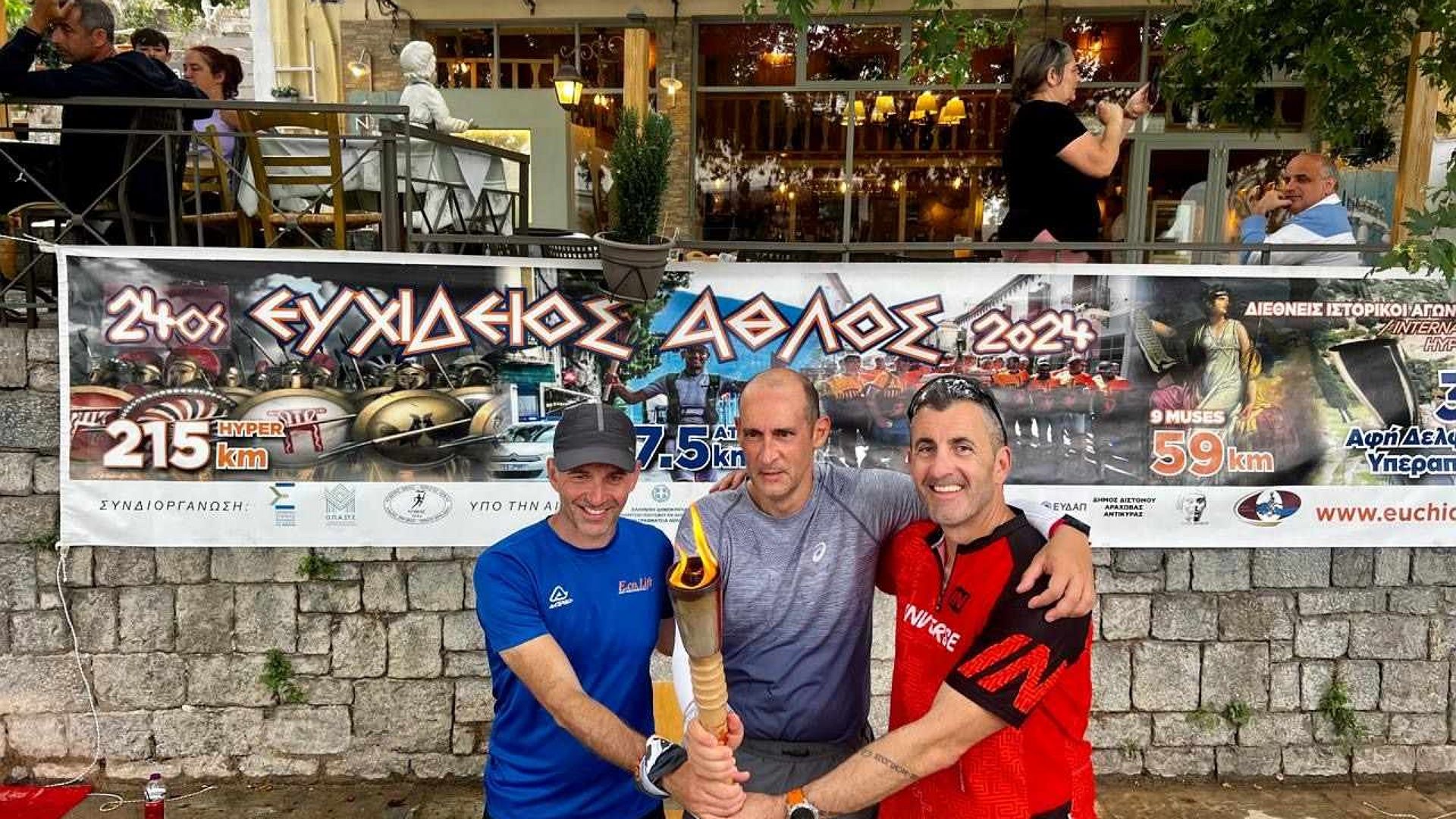 Η εκκίνηση του αγώνα έγινε στις Πλαταιές και ο τερματισμός στα ιερά χώματα των Δελφων σε μια απόσταση 107.5 χλμ και με 2000 θετικής υψομετρικής, τον οποίο ολοκλήρωσε ο ισχυρός άνδρας των Πειραιωτών σε 17 ώρες και 30 λεπτά!