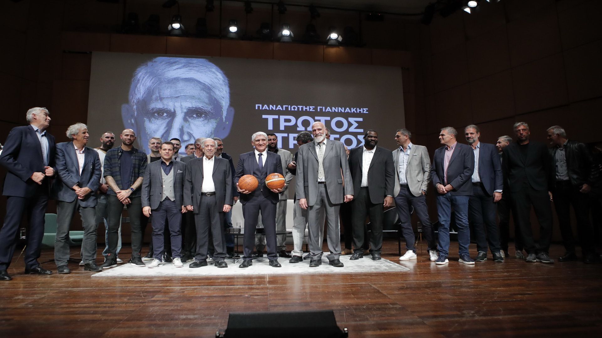 Η συγκίνηση στο πρόσωπο του Παναγιώτη Γιαννάκη ήταν έκδηλη, ειδικά την στιγμή που στην σκηνή, μαζί με… όλο το ελληνικό μπάσκετ, ανέβηκαν και τα δύο εγγόνια του «Δράκου», με την βραδιά να ολοκληρώνεται με τον Παντελή Βλαχόπουλο να διαβάζει ένα χειρόγραφο απόσπασμα του Παναγιώτη Γιαννάκη.