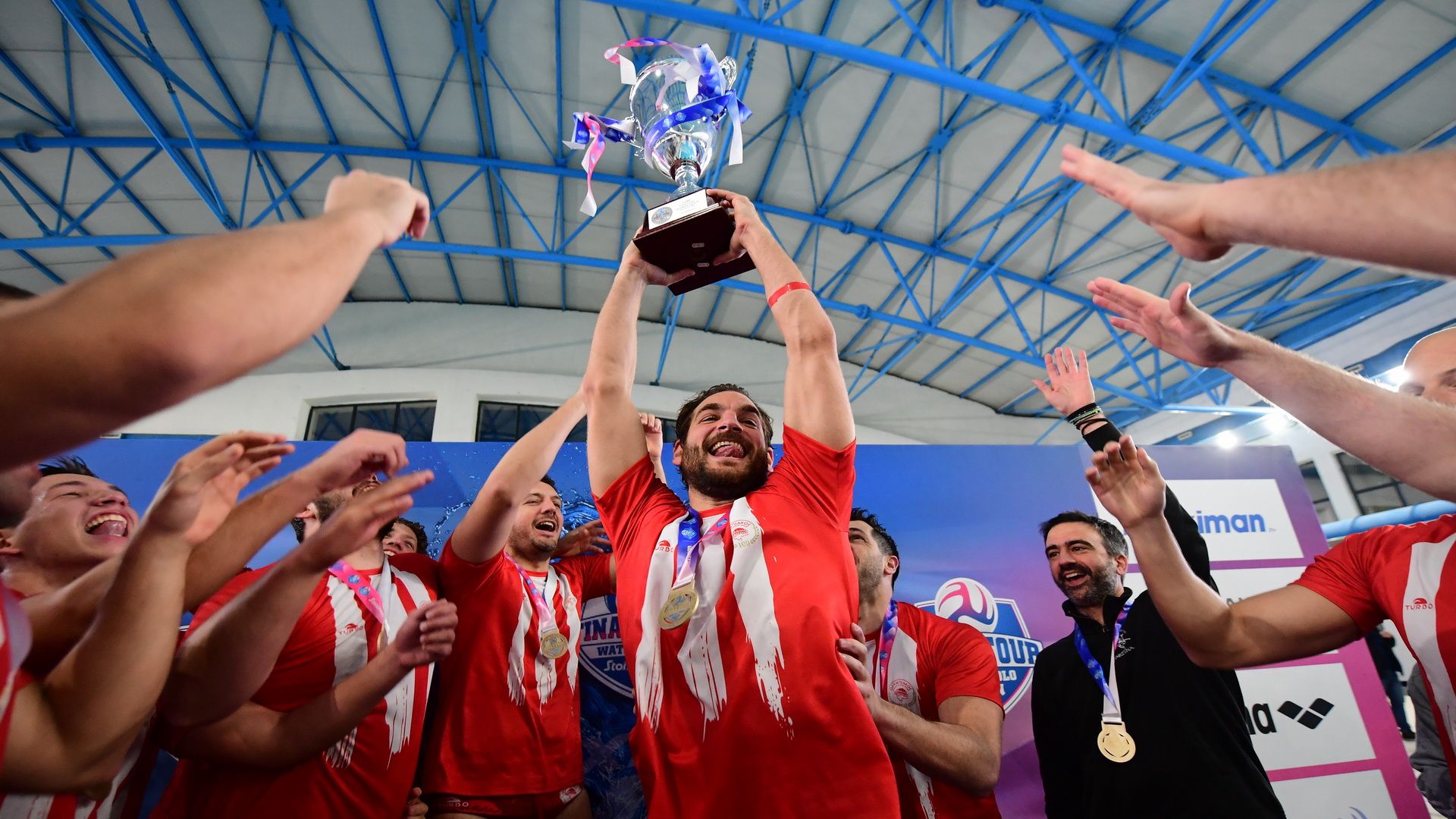 Μετά το τμήμα πόλο Γυναικών και αυτό των Ανδρών έφτασε στην κατάκτηση του Κυπέλλου Ελλάδας, επικρατώντας του Παναθηναϊκού με 22-9, στον τελικό του Βόλου, με την ΚΑΕ Ολυμπιακός να συγχαίρει τους τροπαιούχους.