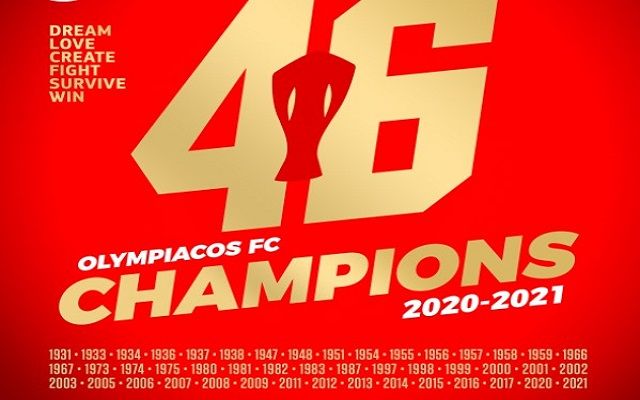 👏🏻👏🏻👏🏻 Πολλά συγχαρητήρια στην ποδοσφαιρική ομάδα του Θρύλου μας για την κατάκτηση του 46ου Πρωταθλήματος Ελλάδος!!!! 🏆🏆🏆 🔴⚪️ #OlympiacosBC #TogetherWeFight https://t.co/Fu8rOO7Ftu— Olympiacos B.C. (@olympiacosbc) May 12, 2021