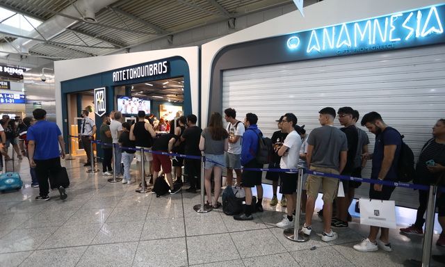 Με το σύνθημα "we are all bros", πραγματοποιήθηκαν την Παρασκευή 17/6 τα εγκαίνια του νέου καταστήματος στο Αεροδρόμιο Αθηνών και το παρών έδωσαν πάνω από 1.000 άτομα, τα οποία σχημάτισαν μεγάλες ουρές, για να αποθεώσουν τους Antetokounbros.