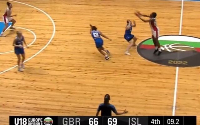 Η παίκτρια της Μεγάλης Βρετανίας, Φατμάτα Τζάνε...έφερε τούμπα μέσα σε 9.8 δευτερόλεπτα ένα παιχνίδι, στο οποίο η Ισλανδία προηγούνταν με τρεις πόντους (69-66).
