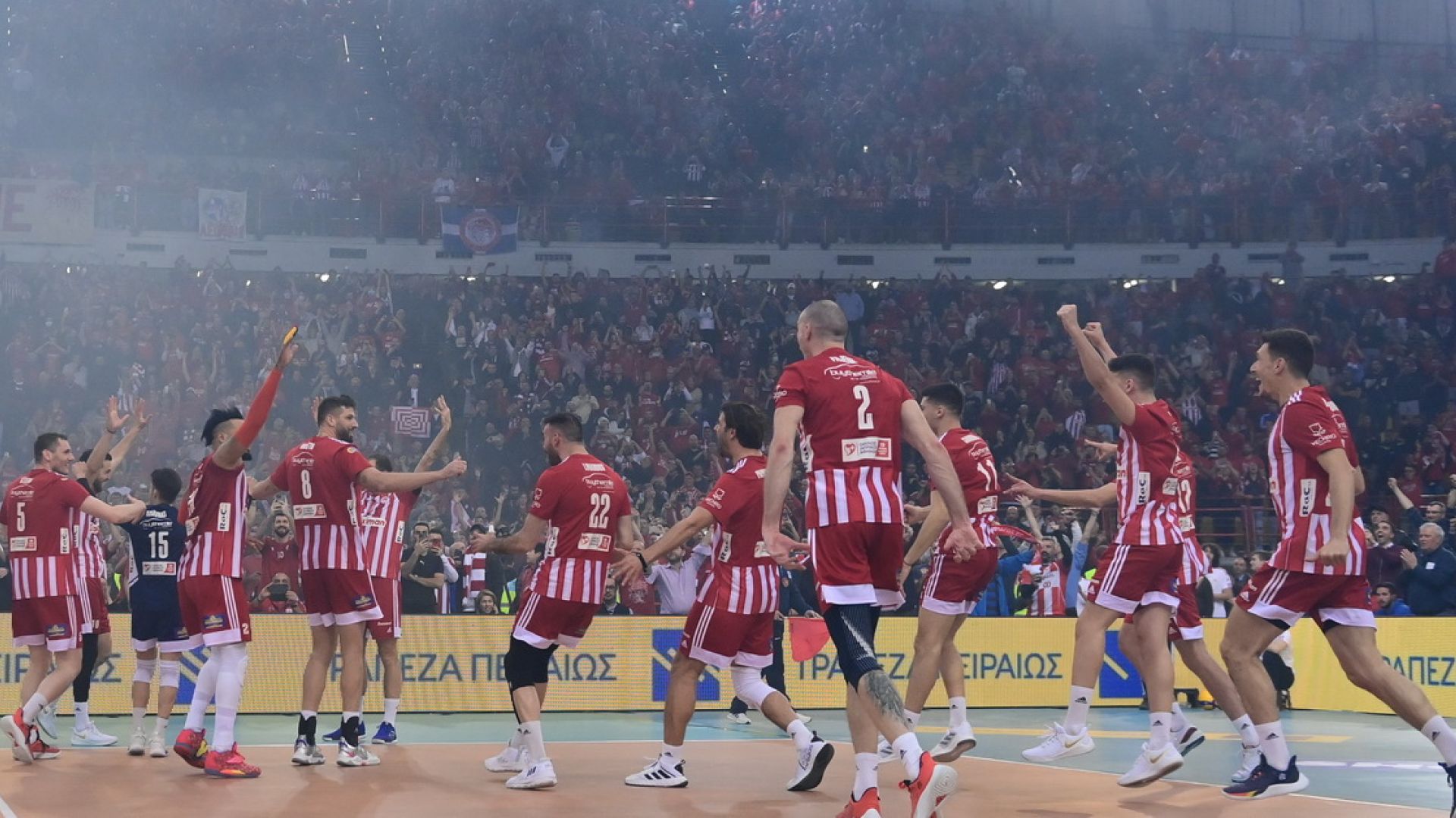Η οικογένεια του Ολυμπιακού γιορτάζει την κατάκτηση ενός ακόμα ευρωπαϊκού τίτλου, αυτή τη φορά του Challenge Cup από το τμήμα βόλεϊ ανδρών.