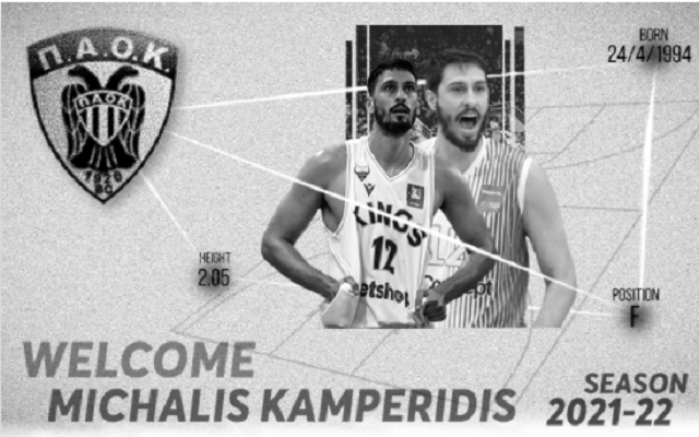 Ο ΠΑΟΚ ανακοίνωσε την απόκτηση του 27χρονου φόργουορντ Μιχάλη Καμπερίδη.