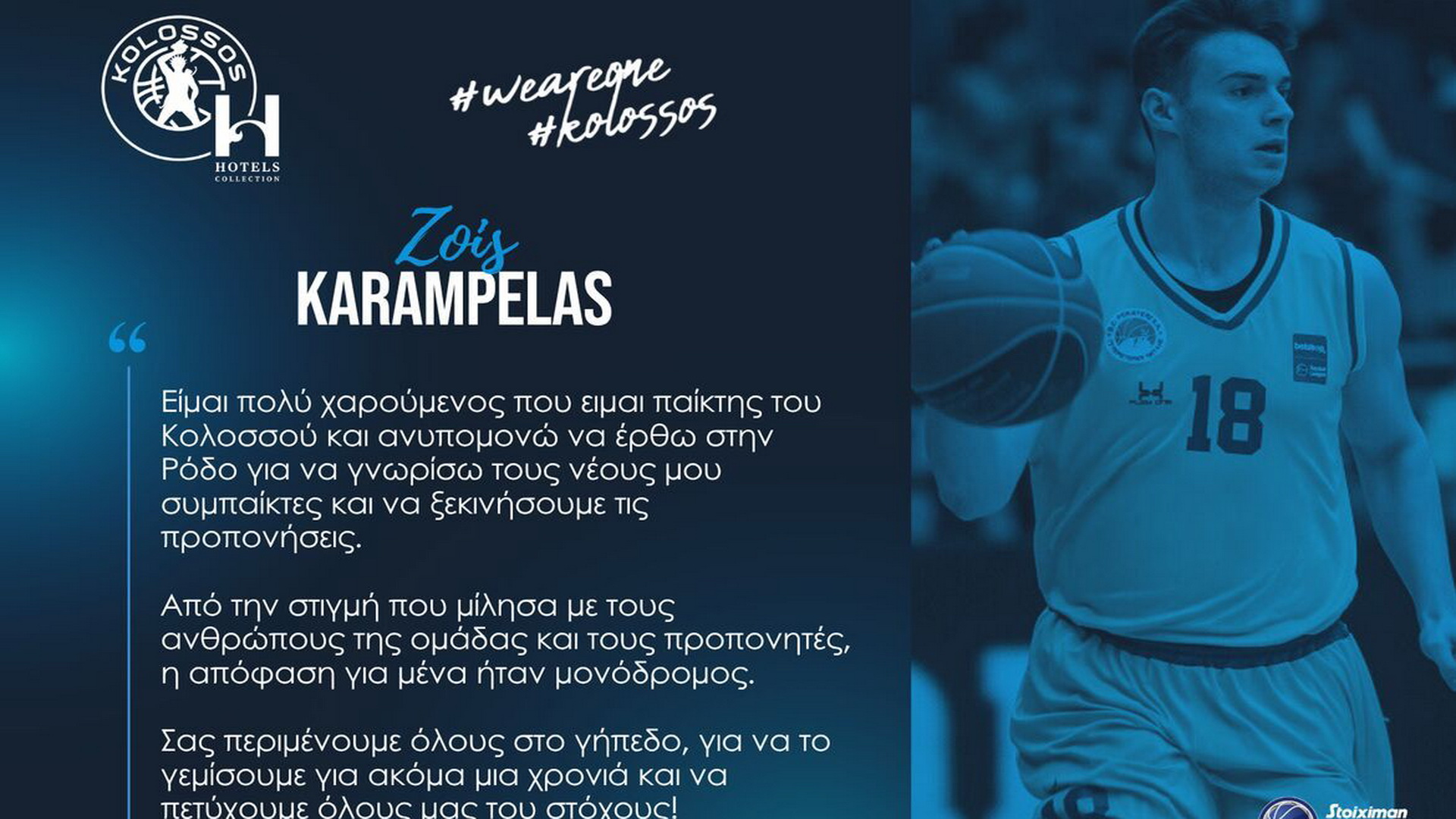 Για την νέα σελίδα της καριέρας του, μίλησε στην ιστοσελίδα του Κολοσσού ο Ζώης Καράμπελας, απευθύνοντας, παράλληλα, κάλεσμα στους φίλους της ομάδας της Ρόδου, να στηρίξουν την προσπάθεια τους.