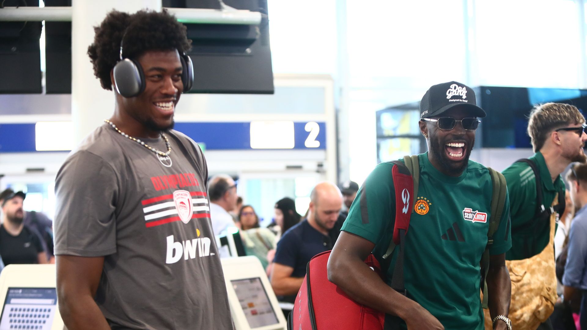 Εκτός από το παρκέ συναντήθηκαν και στο αεροδρόμιο Ολυμπιακός και Παναθηναϊκός, με μέλη των αποστολών των δυο ομάδων να έχουν τετ α τετ πριν μπουν στο αεροπλάνο.