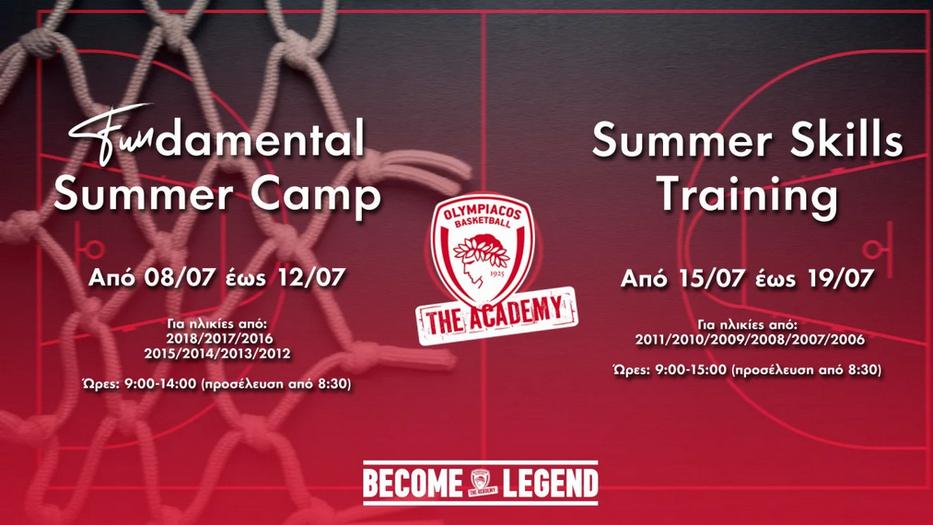 Ολυμπιακός: « Έρχονται τα “The Academy FUNdamental Camp” και “Summer Skills Training”»