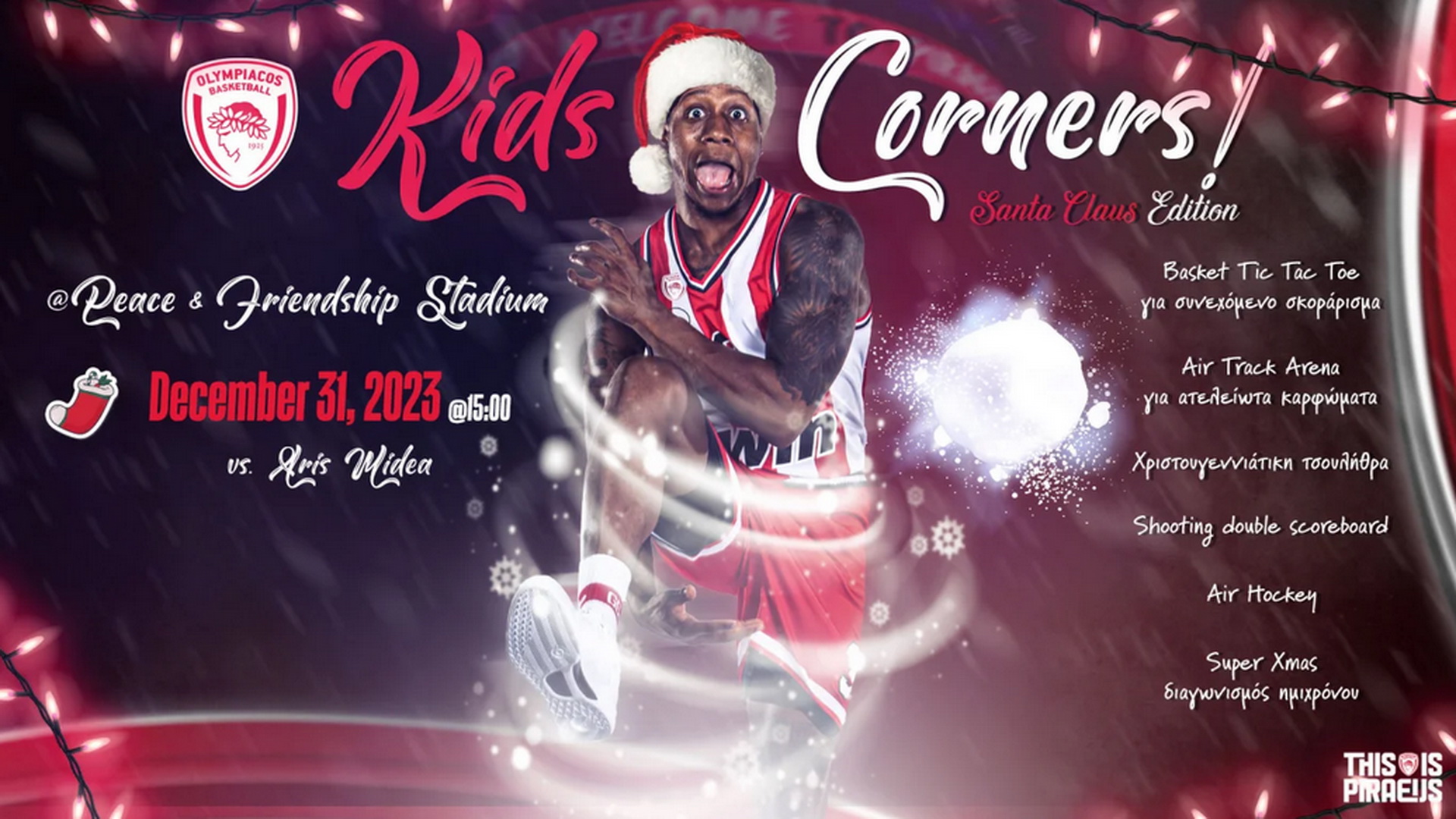 Ο Ολυμπιακός αποχαιρετά το 2023 εντός έδρας, απέναντι στον Άρη, με τους «ερυθρόλευκους» να ετοιμάζουν πολλές εκπλήξεις για τους μικρούς αλλά και τους μεγάλους φίλους τους, που αισθάνονται παιδιά.
