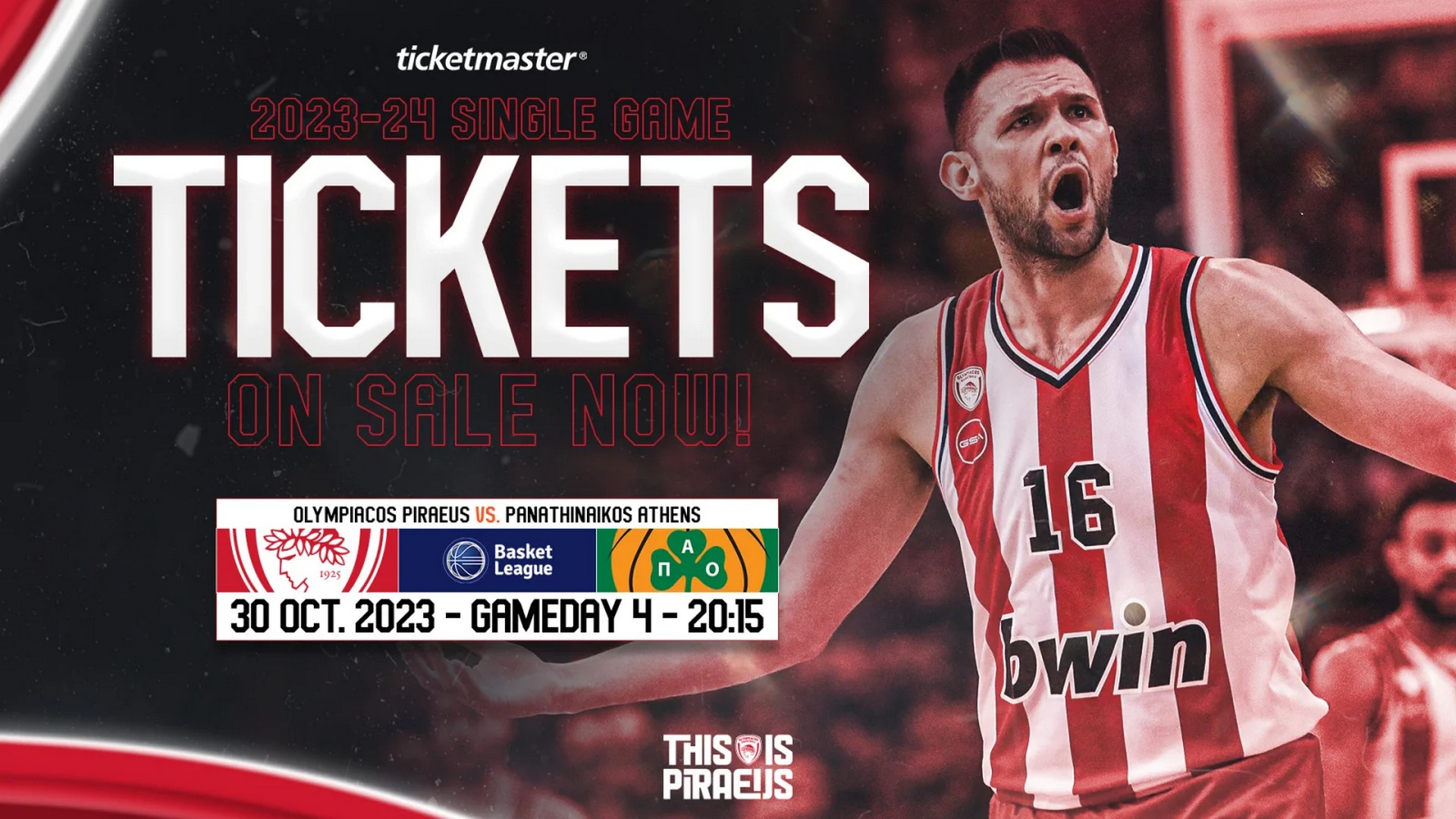 Τον Παναθηναϊκό υποδέχεται ο Ολυμπιακός τη Δευτέρα 30/10 στο πλαίσιο της 4ης αγωνιστικής της Basket League, με τα εισιτήρια του αγώνα να τίθενται στη διάθεση του κοινού από την Πέμπτη 26/10.