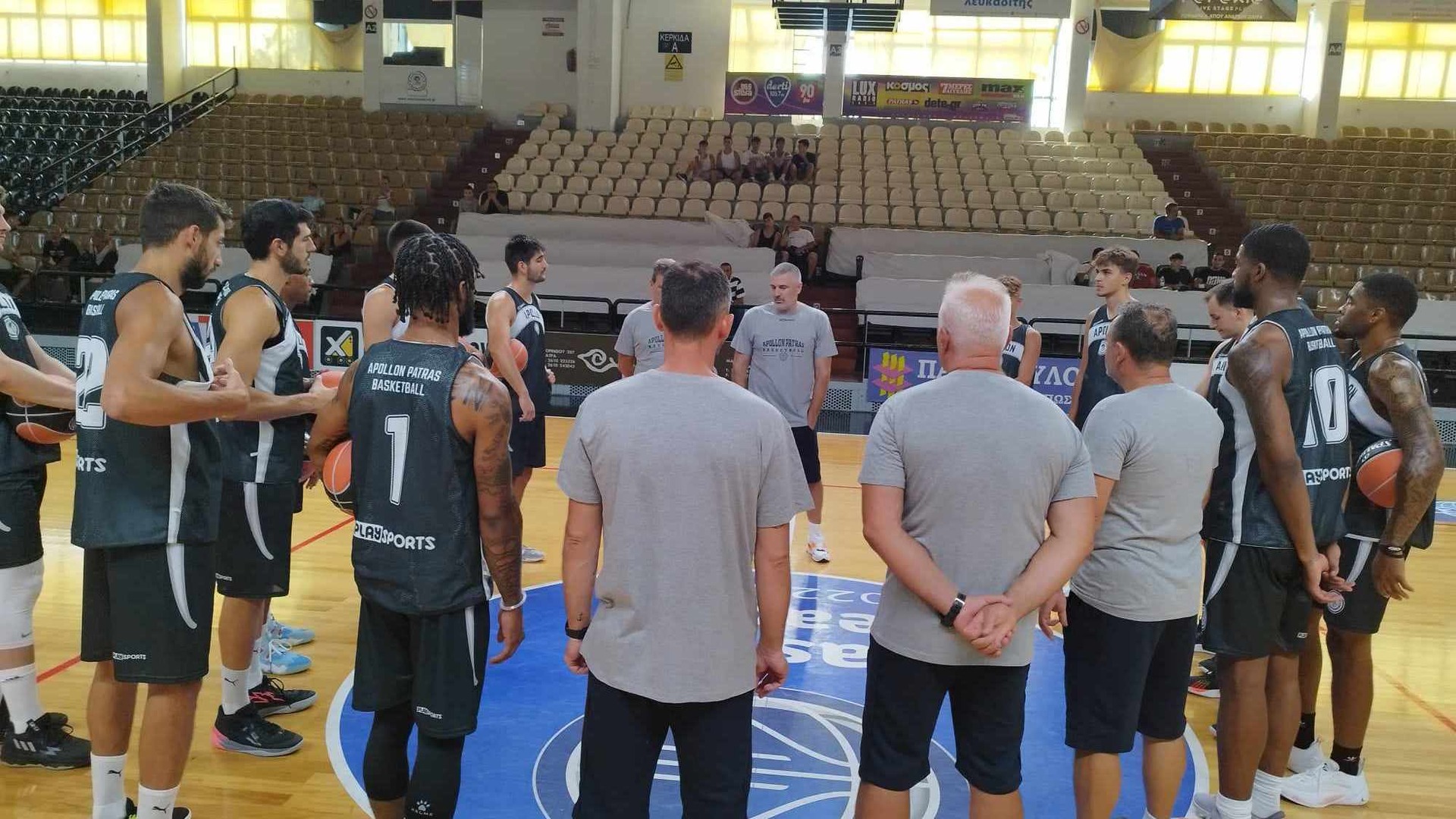 Ο Απόλλων Πάτρων ενημέρωσε για την πρώτη προπόνηση της ομάδας για την νέα αγωνιστική σεζόν, με τον προπονητή, Νίκο Βετούλα και τους παίκτες, Γάιος Σκορδίλης, Χρήστος Σαλούστρος, Πάνος Φιλιππάκος και Τι Τζέι Στάρκς να κάνουν τις πρώτες τους δηλώσεις.