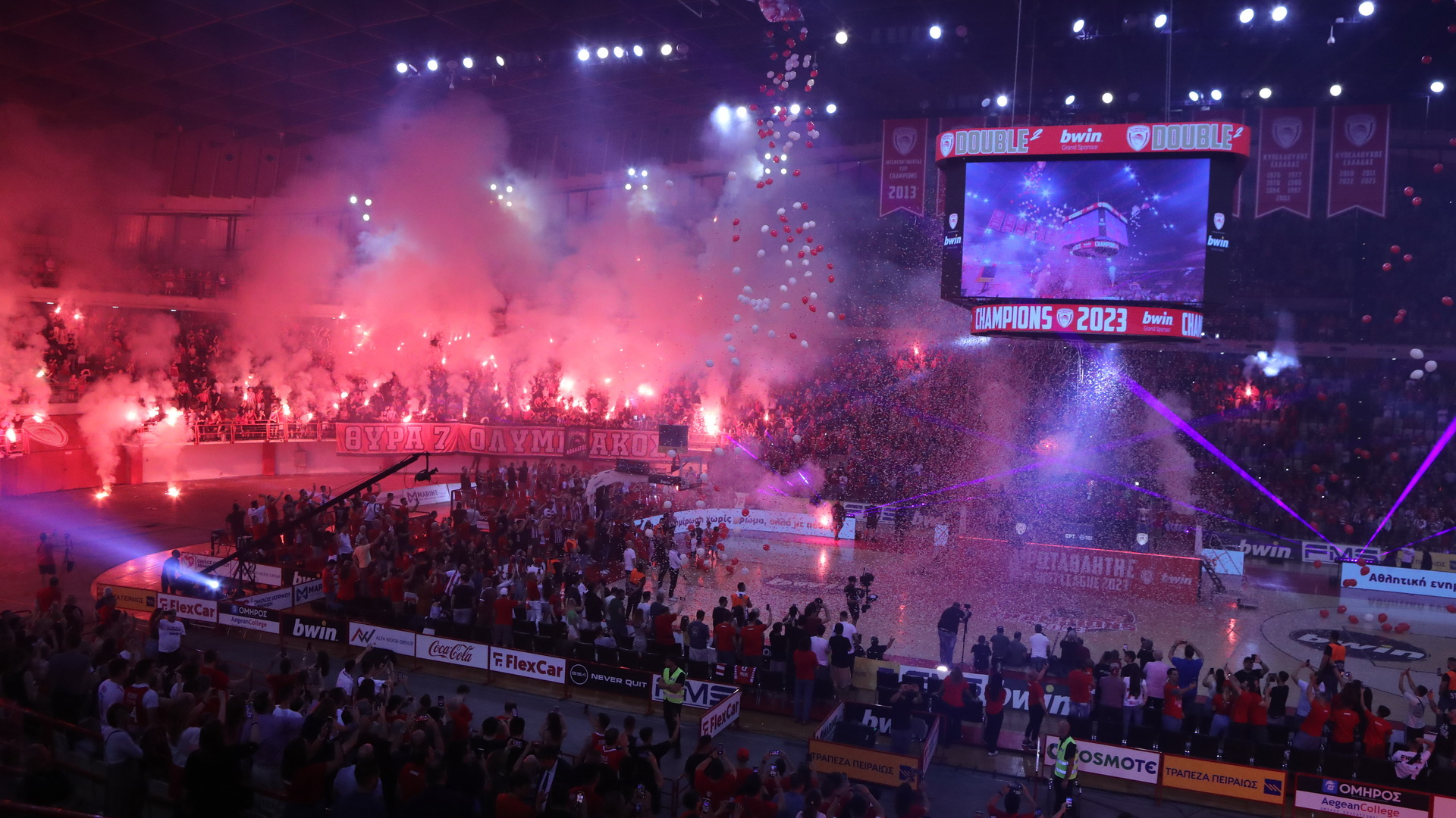 Ο Ολυμπιακός γιορτάζει την κατάκτηση του 14ου πρωταθλήματος στην ιστορία του, με τον τίτλο της σεζόν 2022-23 να βρίσκεται ήδη στον ουρανό του ΣΕΦ.