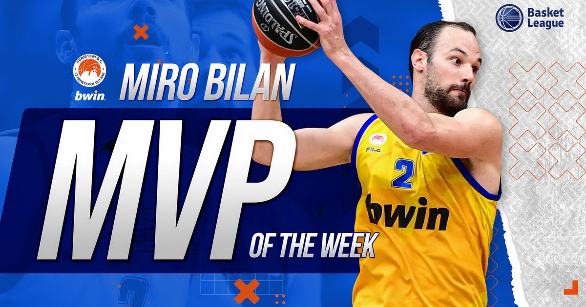 Στα χέρια του Μίρο Μπίλαν κατέληξε το βραβείο του MVP της 18ης αγωνιστικής της Basket League. Ο άσος του Περιστερίου έκανε double – double, στην νίκη της ομάδας του επί του Λαυρίου, με τον Κροάτη να έχει 18 πόντους και 15 ριμπάουντ, συγκεντρώνοντα2 34 βαθμούς στο σύστημα ranking.