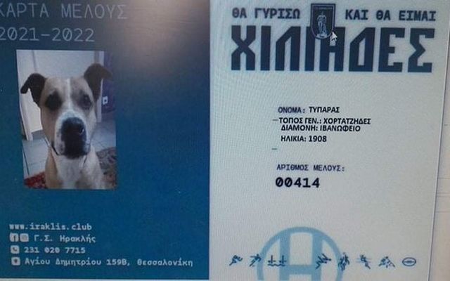 Την δική του κάρτα μέλους στον Ηρακλή απέκτησε ο Τυπάρας, ο γνωστός σκύλος ο οποίος αποτελεί μόνιμο θαμώνα των τελευταίων αγώνων του Γηραιού στο Ιβανώφειο!