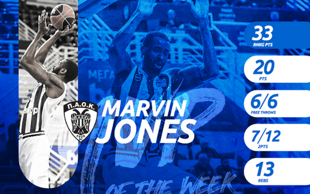 Ασπρόμαυρο χρώμα είχε το βραβείο του MVP της 12ης αγωνιστικής, καθώς κατέληξε στα χέρια του Μάρβιν Τζόουνς.