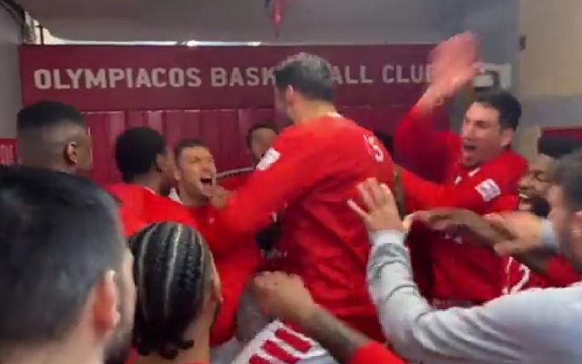 Ο αρχηγός του Ολυμπιακού, Γιώργος Πρίντεζης, εμψύχωσε τους συμπαίκτες του λίγο πριν την έναρξη του ντέρμπι με τον Παναθηναϊκό στο ΣΕΦ.