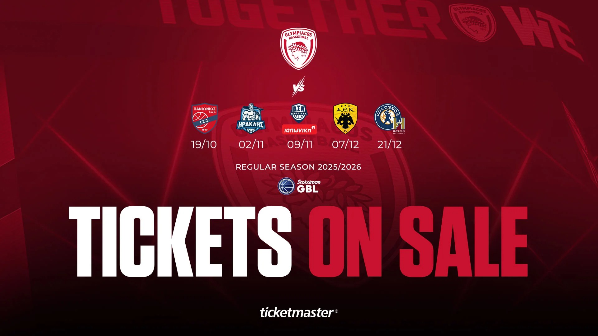 Η «ερυθρόλευκη» ΚΑΕ έθεσε σε κυκλοφορία τα εισιτήρια για τους αγώνες της GBL εώς τα τέλη Δεκεμβρίου που θα γίνουν στο ΣΕΦ.