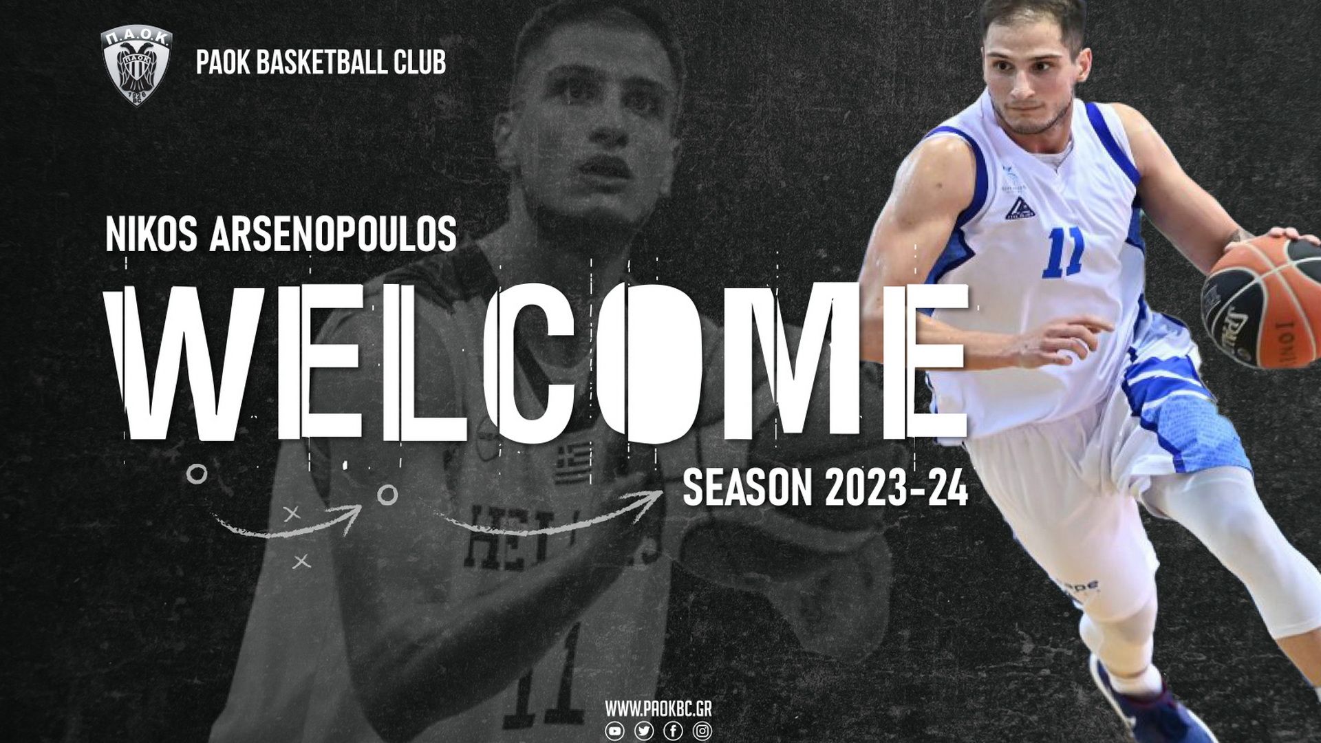 Η ΚΑΕ ΠΑΟΚ mateco ανακοινώνει τη συμφωνία με τον Νίκο Αρσενόπουλο, ο οποίος θα αγωνιστεί στην ομάδα μας τη σεζόν 2023-24. Καλωσορίζουμε στη μεγάλη οικογένεια του ΠΑΟΚ έναν από τους πιο αξιόλογους αθλητές της νέας γενιάς του Ελληνικού μπάσκετ.