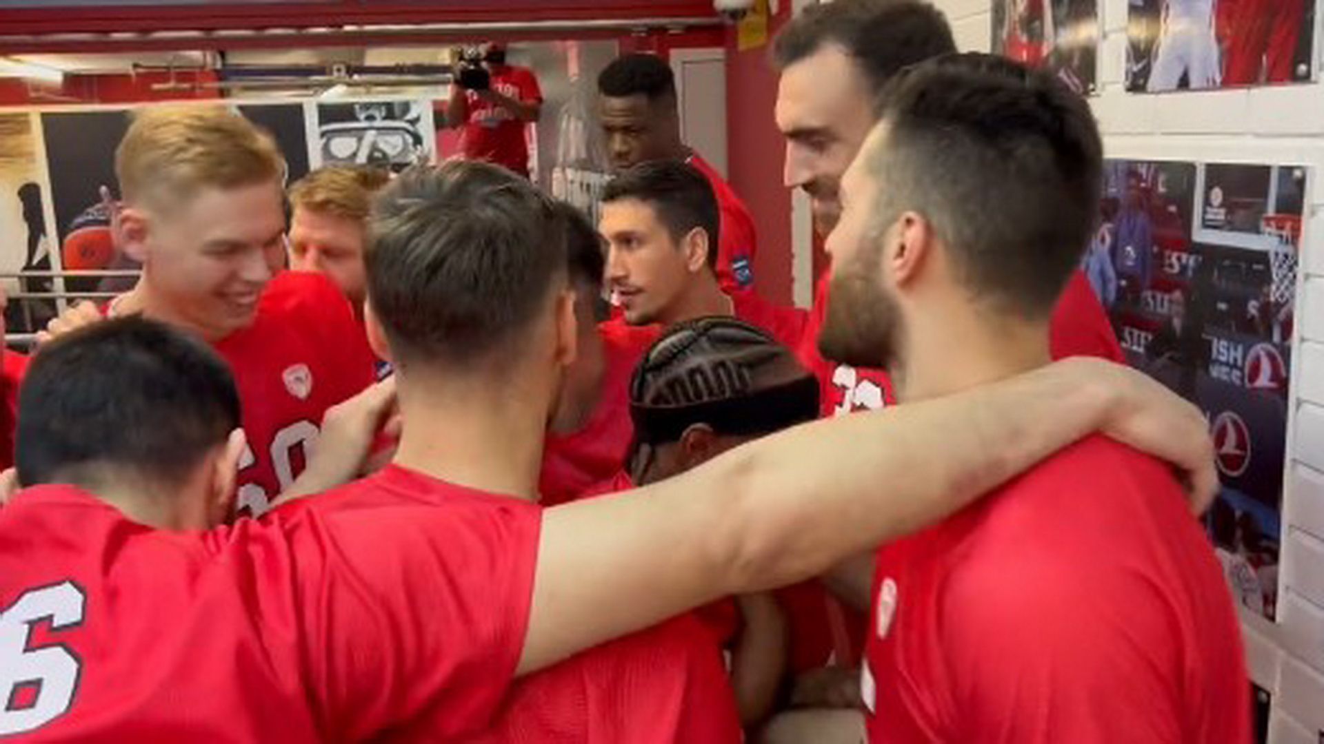 Ολυμπιακός – Ερυθρόλευκη αγκαλιά πριν την είσοδο στο παρκέ για το ντέρμπι με τον Παναθηναϊκό (vid)