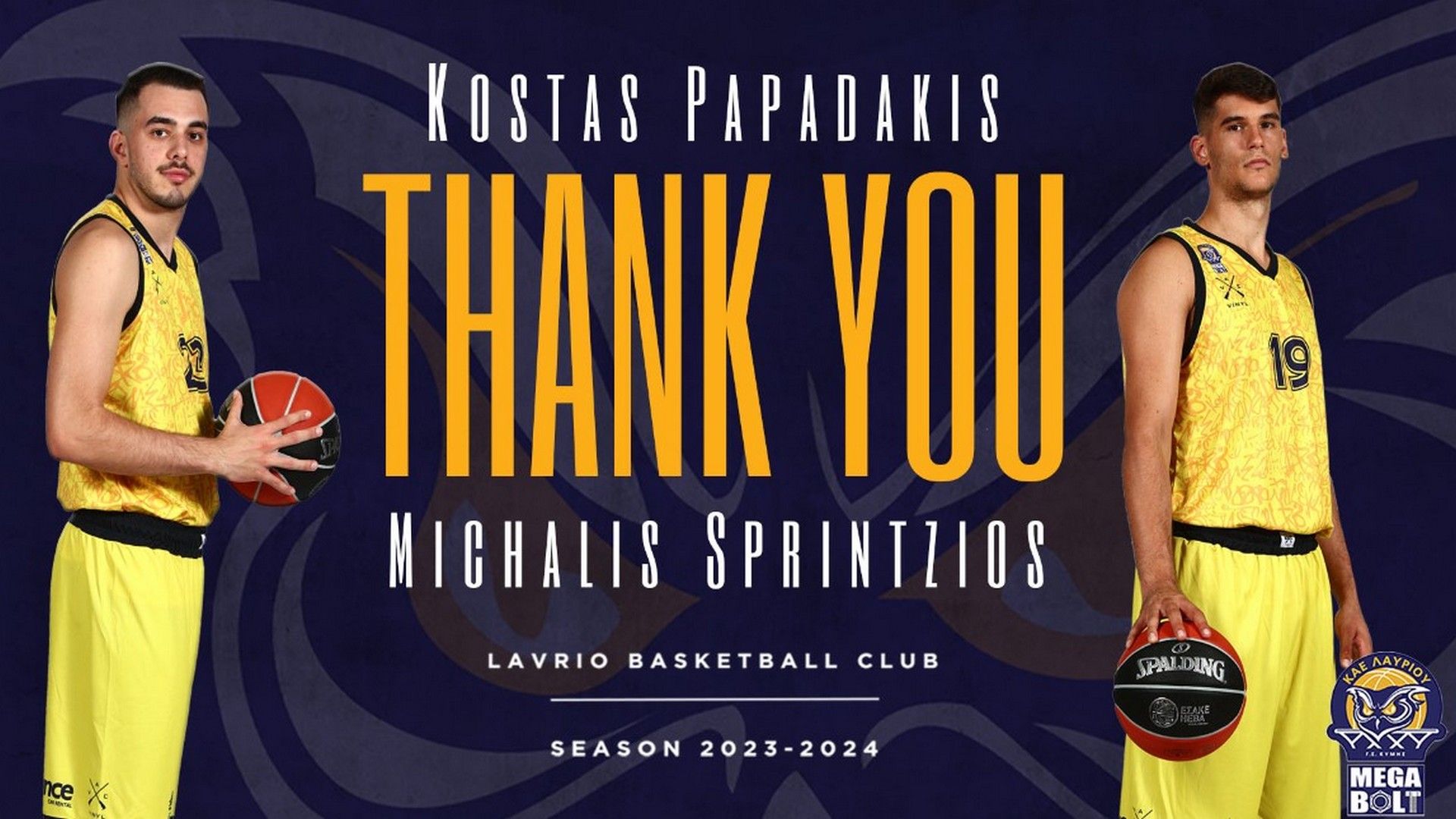 «Η ΚΑΕ Λαύριο Megabolt ανακοινώνει τη λύση της συνεργασίας με τους αθλητές Κώστα Παπαδάκη και Μιχάλη Σπρίντζιο.