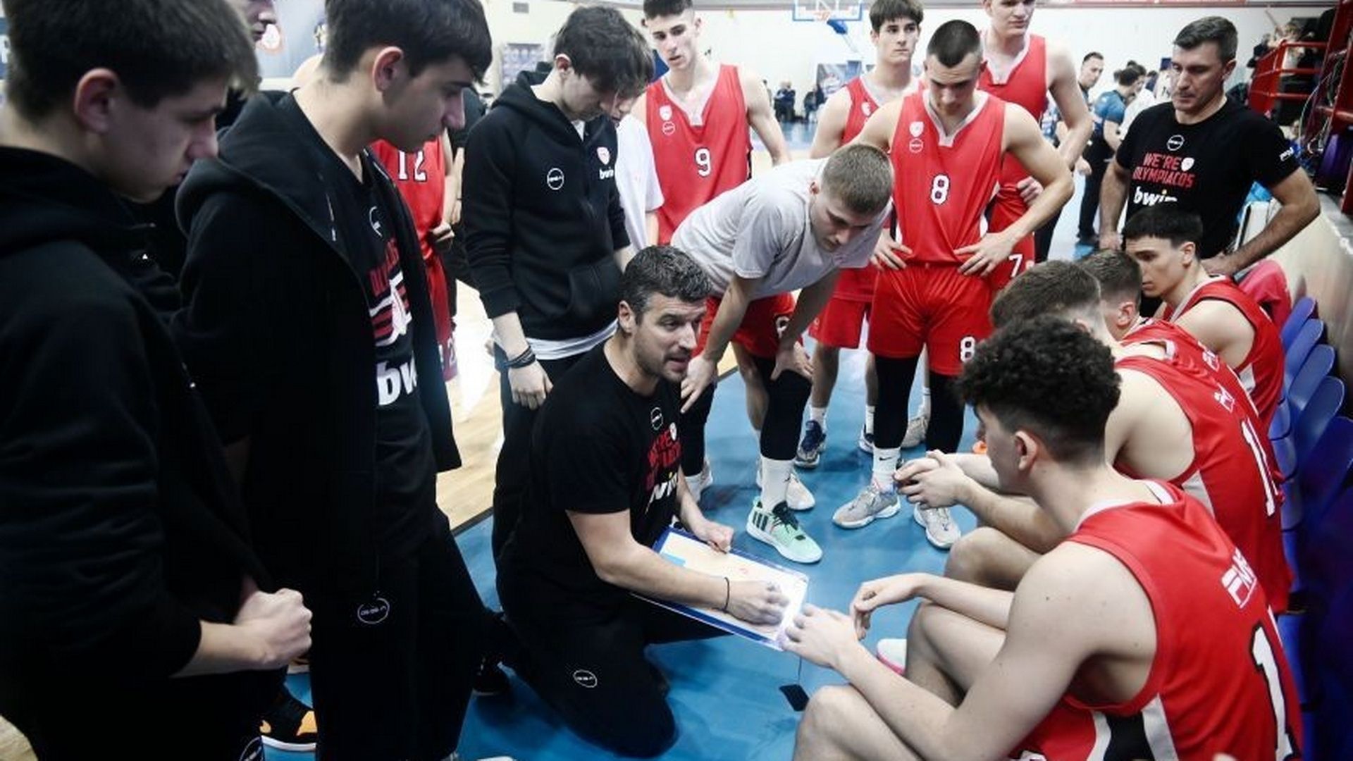 Για τη σύνδεση του εφηβικού τμήματος τού Ολυμπιακού με το ανδρικό: «Εμείς είμαστε μια ομάδα που το κομμάτι του ανδρικού με το εφηβικό είναι πάρα πολύ συνδεδεμένα. Στον τελικό με τη ΔΕΚΑ είχαν έρθει ο Χρήστος Μπαφές, ο Γιώργος Μποζίκας, ο Στέφανος Τριαντάφυλλος. Έχουμε 2-3 παιδιά που προπονούνται με την ανδρική ομάδα και έχουν πάρει και συμμετοχή στο πρωτάθλημα. Γενικά όλοι οι παίκτες βλέπουν όλα τα παιχνίδια της ανδρικής ομάδας, τους αρέσει, κουβεντιάζουν, έχουν απορίες, τις συζητάμε, ονειρεύονται μέσα απ’ αυτό και οραματίζονται διάφορα. Γι’ αυτό είναι πολύ ευχάριστο για ‘μένα να κουβεντιάζω μαζί τους».