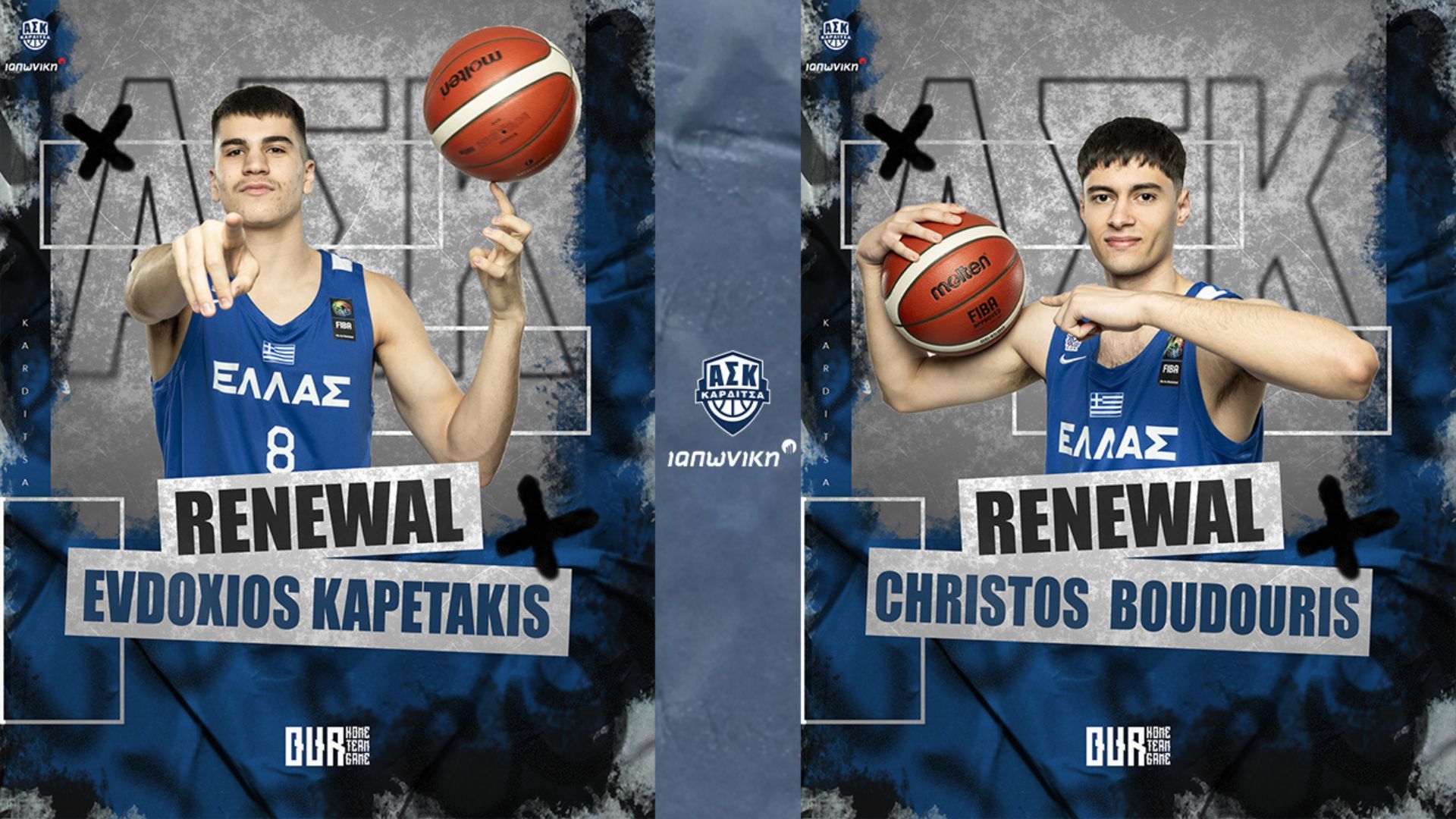 Η ομάδα της Καρδίτσας ανακοίνωσε πως οι Ευδόξιος Καπετάκης και Χρήστος Μπουντούρης, χάλκινοι αθλητές με την Εθνική Νέων στο Ευρωπαικό πρωτάθλημα της Πολωνίας, θα παραμείνουν στον σύλλογο και την επόμενη σεζόν.