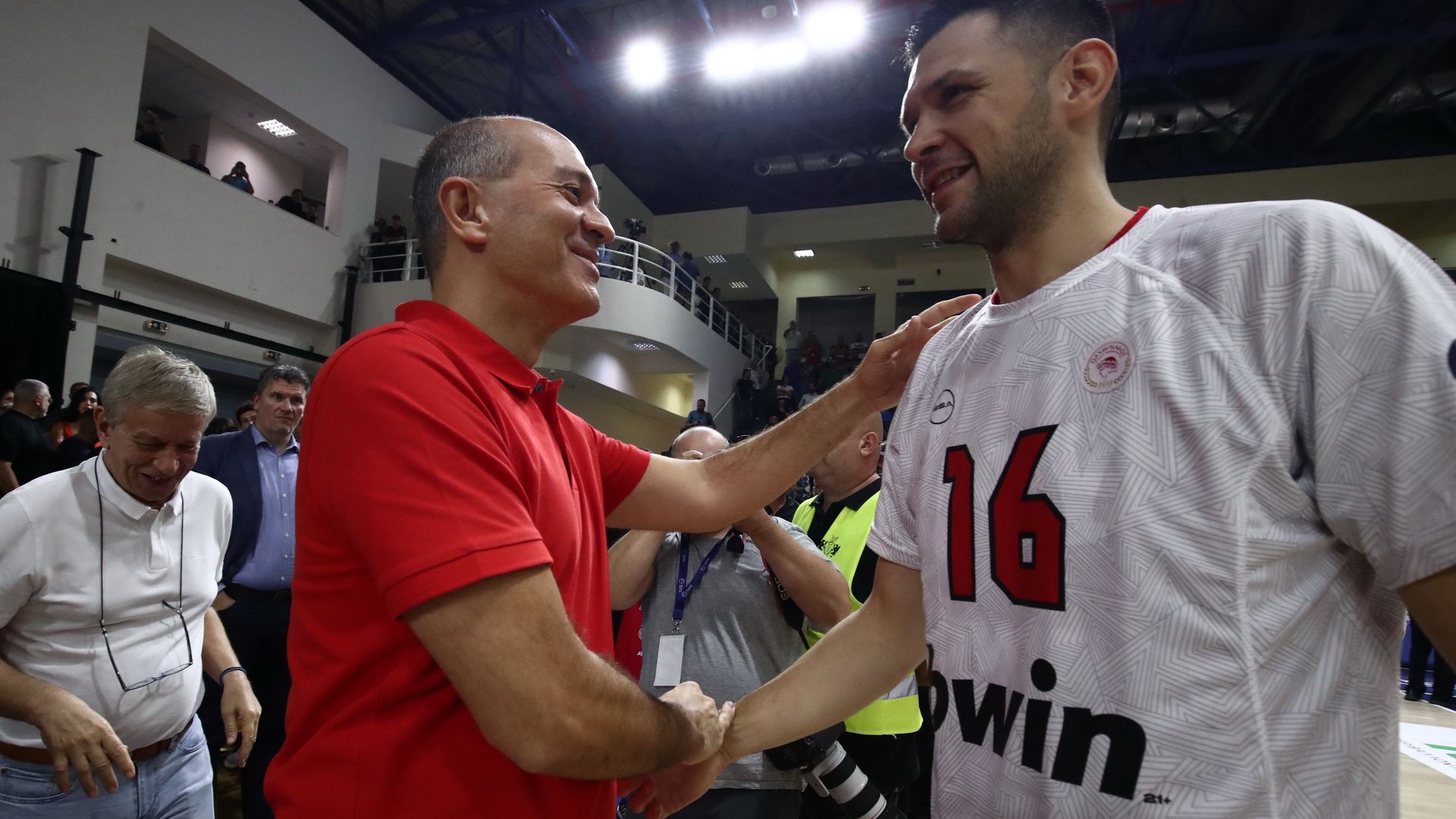 Ο Ολυμπιακός κατέκτησε το τρίτο συνεχόμενο Super Cup απέναντι στον Παναθηναϊκό, με τους Παναγιώτη και Γιώργο Αγγελόπουλο, αμέσως μετά το φινάλε του αγώνα, να πανηγυρίζουν μαζί με τον Γιώργο Μπαρτζώκα και τους παίκτες του, το βαρύτιμο τρόπαιο.