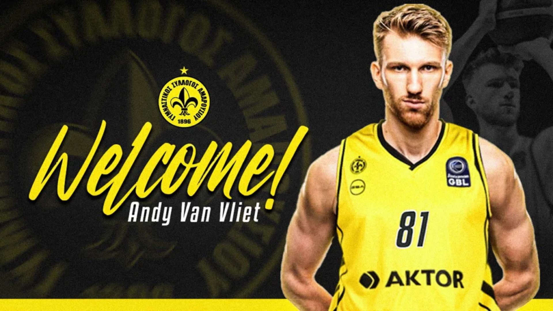 "Με τις ευχές για ΚΑΛΗ ΧΡΟΝΙΑ, η ΚΑΕ Γ.Σ. ΑΜΑΡΟΥΣΙΟΥ 1896, ανακοινώνει την απόκτηση του forward/center Andy Van Vliet (29, 2.13). Ο Βέλγος παίκτης ήρθε στην Αθήνα και υπέγραψε συμβόλαιο συνεργασίας μέχρι το τέλος της σεζόν για να αντικαταστήσει τον τραυματία Ισμαέλ Σανόγκο. Μάλιστα τέθηκε στην διάθεση του Φώτη Τακιανού για το σαββατιάτικο μας με τον Κολοσσό στην Ρόδο.