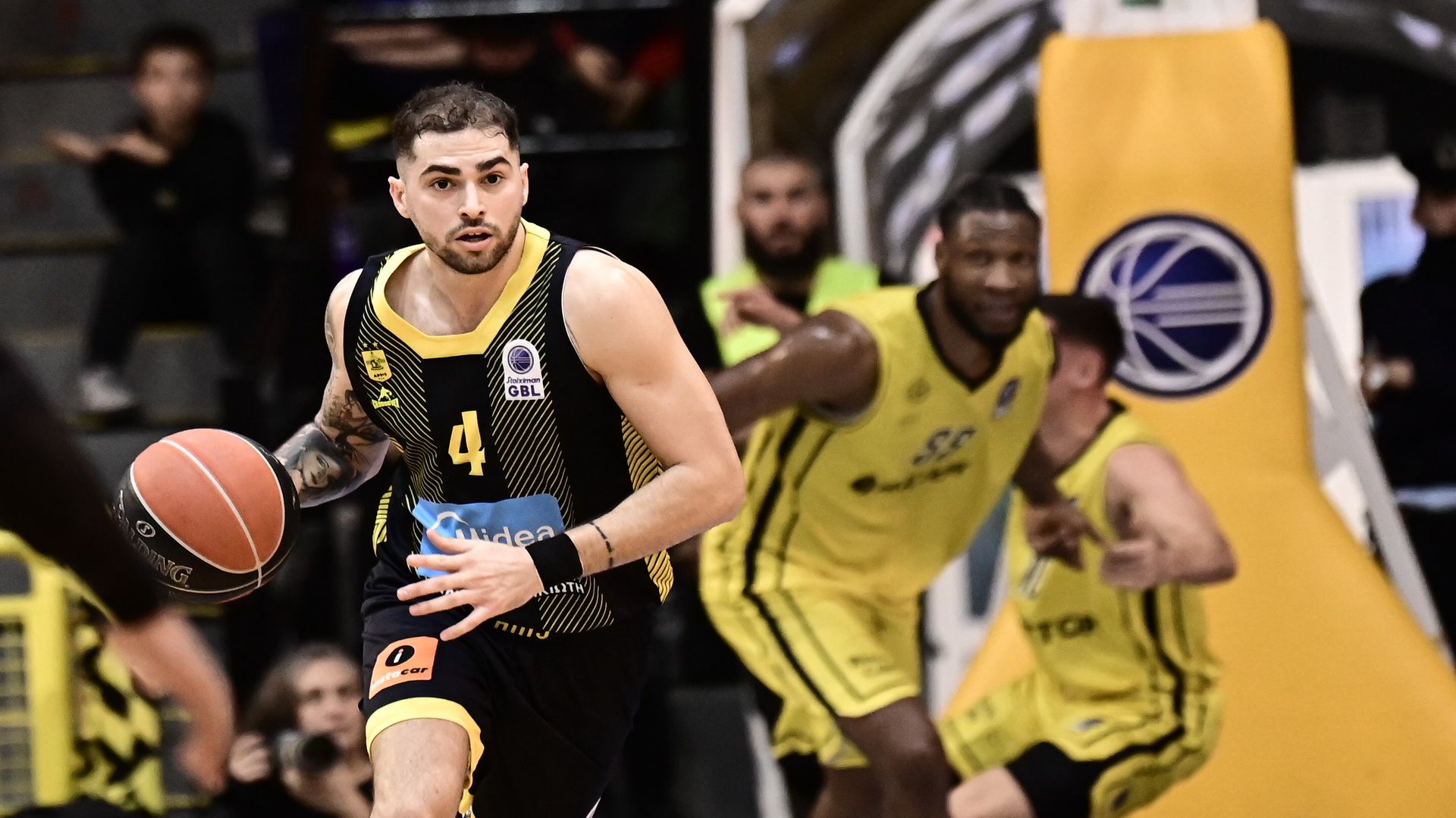 Με ωραίες κινήσεις στην αντίπαλη άμυνα ο Μποχωρίδης βρήκε λύσεις για τον Άρη και μείωσε στον ένα πόντο στο 12' λεπτό (23-22). Με σπουδαίες άμυνες που έφεραν και ένα πολύ ωραίο highlight με την τάπα του Χοτζ πάνω στον Φρίντρικσον, οι κιτρινόμαυροι πήραν το momentum και με τρίποντο του Κούπερ, προηγήθηκαν με δύο πόντους (25-23, 13' λεπτό). Μετά από πολλά λεπτά αστοχίας και των δύο ομάδων, ο Φρίντρικσον με δίποντο του ισοφάρισε στο 15' λεπτό για τους γηπεδούχους (25-25). Ο διεθνής Ισλανδός γκαρντ έδωσε ασίστ για το απίστευτο κάρφωμα του Λατζεβάιν στο 16' λεπτό, με το οποίο η ομάδα του κόουτς Τακιανού, πήρε προβάδισμα με δύο πόντους (27-25, 16' λεπτό). Άμεση απάντηση με τον Τολιόπουλο για την ομάδα του προπονητή Βετούλα (28-27, 17' λεπτό). όπως και με το λέι απ του διεθνή Έλληνα γκαρντ στο 18΄ λεπτό (30-29), παρά το καλάθι του Χάρελ για την αθηναϊκή ομάδα που προηγήθηκε (29-28, 18' λεπτό). Ανάσα τριών πόντων για τους Θεσσαλονικείς από το δίποντο του Γουίλις (32-29, 18' λεπτό), με την ομάδα του Αμαρουσίου να μειώνει την απόσταση στον ένα πόντο στο 18' λεπτό (32-31). Με μια βολή του ο Τολιόπουλος έκανε το +2 για την ομάδα της Βόρειας Ελλάδας (33-31, 19' λεπτό), με τον Λάτζεβαιν από τους κίτρινους...να απαντάει με το ίδιο νόμισμα (33-32, 19' λεπτό), διαμορφώνοντας το σκορ του πρώτου ημιχρόνου. Ο Άρης με ένα επί μέρους σκορ 15-9 επί του Αμαρουσίου, προηγήθηκε με ένα πόντο (33-32), κάνοντας ντέρμπι τον αγώνα.