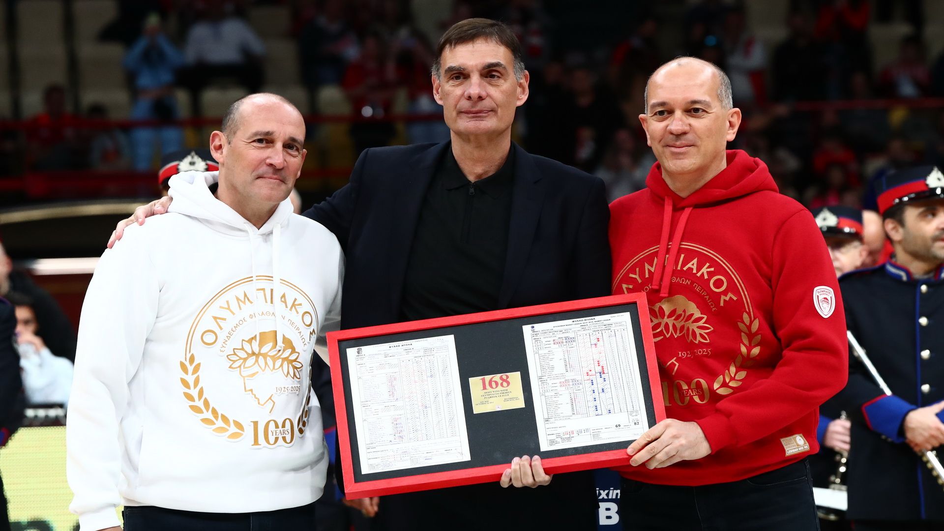 Ο Γιώργος και ο Παναγιώτης Αγγελόπουλος βράβευσαν τον Γιώργο Μπαρτζώκα, ως πολυνίκη προπονητή στην ιστορία του Ολυμπιακού, με 168 θετικά αποτελέσματα στην Basket League (ισοφάρισε το ρεκόρ του Γιάννη Ιωαννίδη).