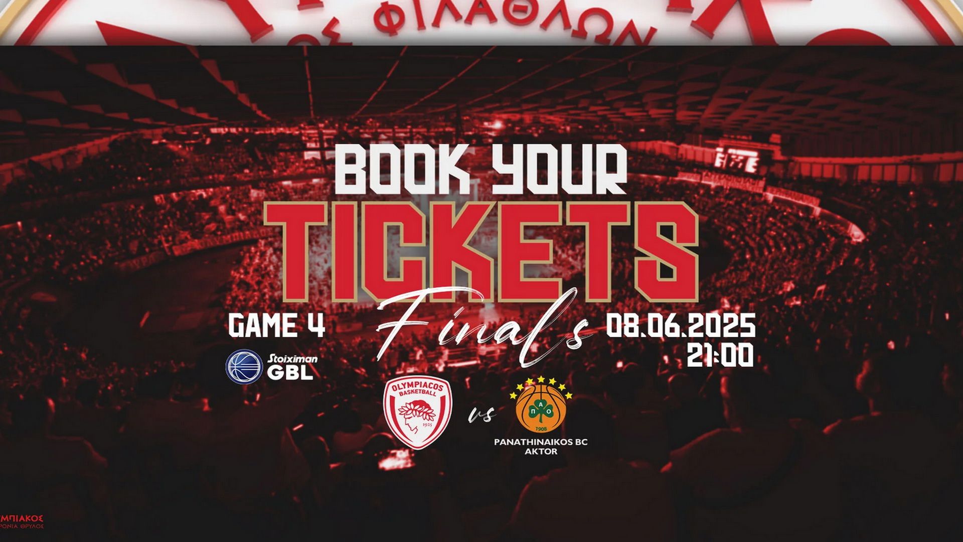 Η Κ.Α.Ε. ΟΛΥΜΠΙΑΚΟΣ θα ήθελε να ενημερώσει τους φιλάθλους της ότι τα εισιτήρια για τον εξ΄αναβολής 4ο τελικό αγώνα της STOIXIMAN GBL με τον ΠΑΝΑΘΗΝΑΪΚΟ AKTOR που θα διεξαχθεί την Κυριακή 08/06/2025 με ώρα έναρξης 21:00 θα είναι διαθέσιμα ξανά προς πώληση από την Πέμπτη 05/06/2025 και ώρα 14:00, μέσω του www.olympiacosbc.gr, μέσω του www.ticketmaster.gr, είτε μέσω του τηλεφωνικού κέντρου, στο τηλέφωνο 2111996007.