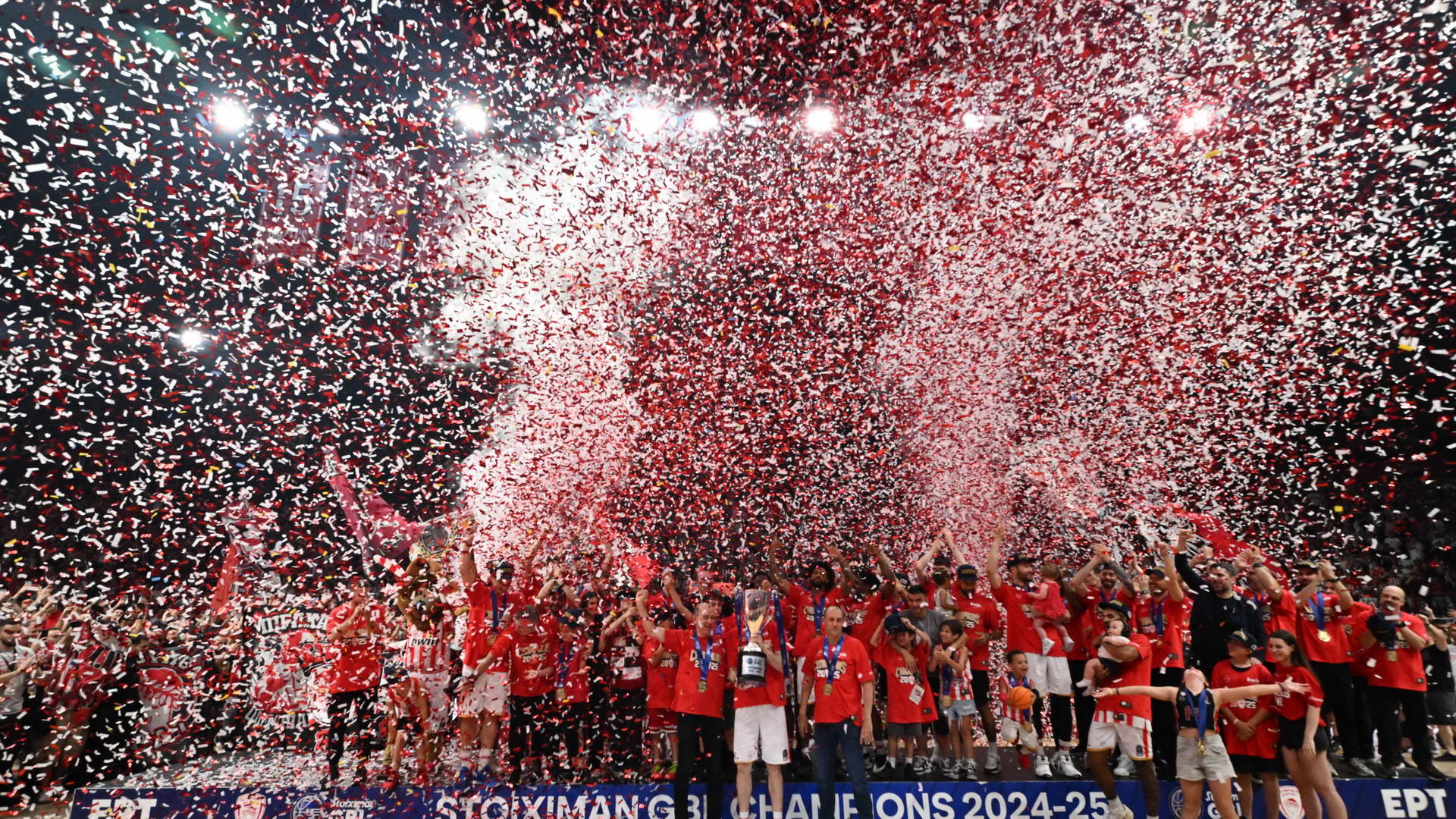 Ο Ολυμπιακός έφτασε πανάξια στην κατάκτηση του πρωταθλήματος και ο Κώστας Παπανικολάου ύψωσε ψηλά στον ουρανό του ΣΕΦ, το βαρύτιμο τρόπαιο.