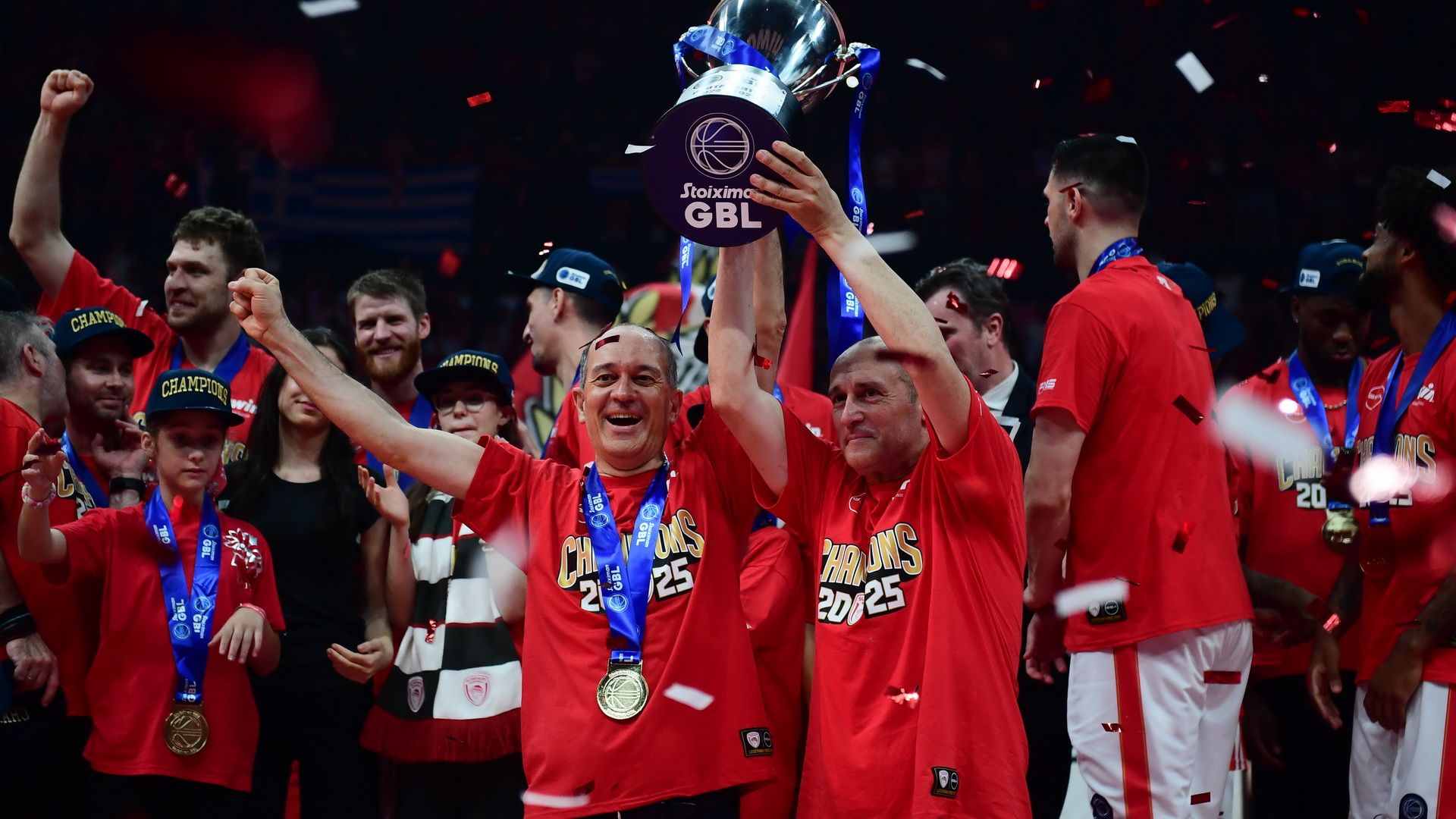 Ο Ολυμπιακός το βράδυ της Κυριακής νίκησε τον Παναθηναικό και στέφθηκε πρωταθλητής Ελλάδας για την σεζόν 2024-2025, με τους ισχυρούς άνδρες της ΚΑΕ Παναγιώτη και Γιώργο Αγγελόπουλο να το πανηγυρίζουν δεόντως.
