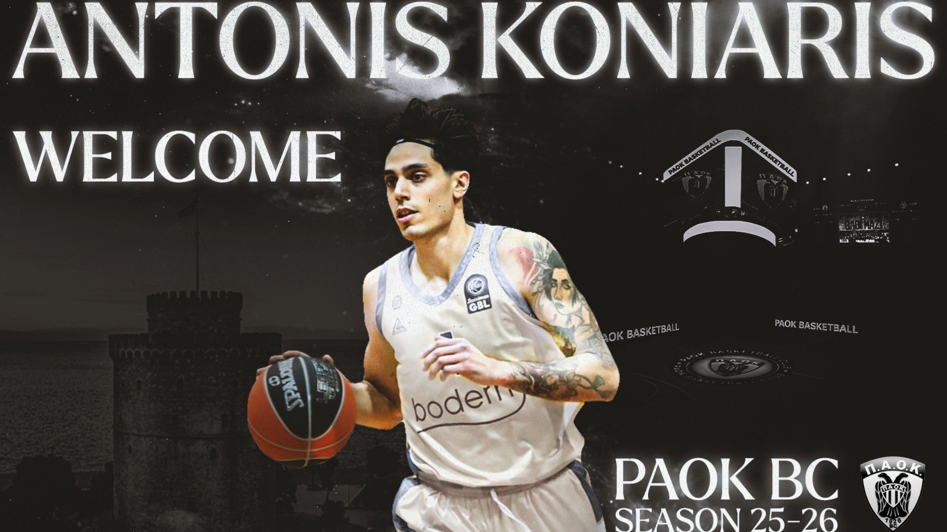 Η ΚΑΕ ΠΑΟΚ mateco ανακοινώνει τη συμφωνία με τον Αντώνη Κόνιαρη, ο οποίος επιστρέφει στην ομάδα μας για να αγωνιστεί και πάλι με την ασπρόμαυρη φανέλα τη σεζόν 2025-26.