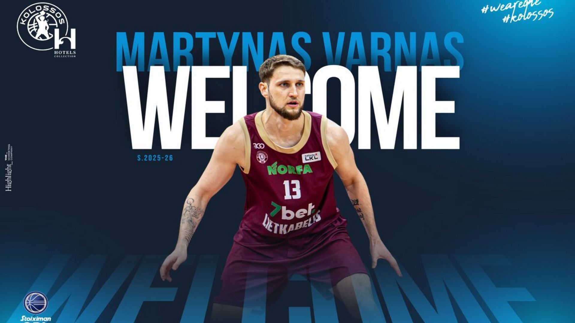 Η ΚΑΕ Κολοσσός H Hotels Collecion ανακοινώνει τη συμφωνία της με τον Μαρτίνας Βάρνας.